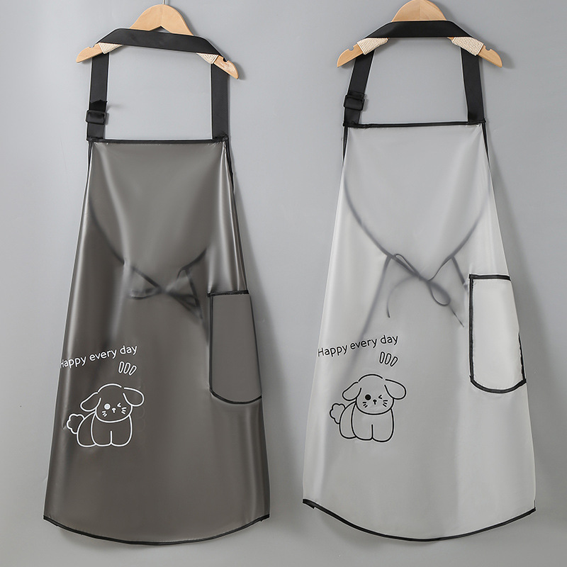 半透明の防汚、防水、耐油 TPU エプロン女性用首吊り調節可能なかわいい漫画のキッチンエプロン作業服
