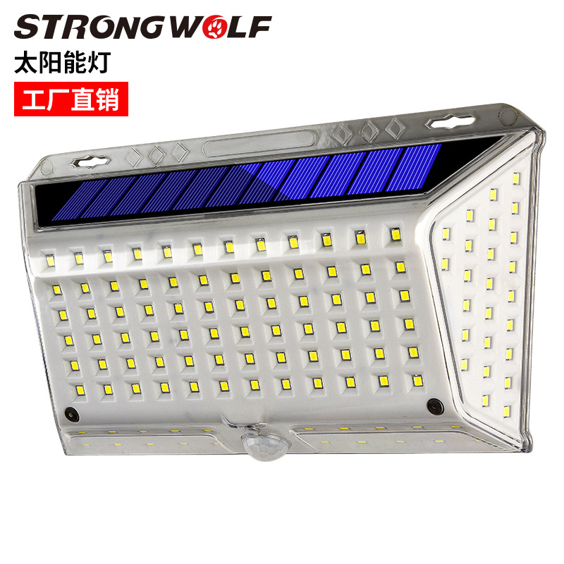 国境を越えた新型74LED太陽エネルギー誘導灯三頭回転誘導壁灯屋外花園灯車庫灯