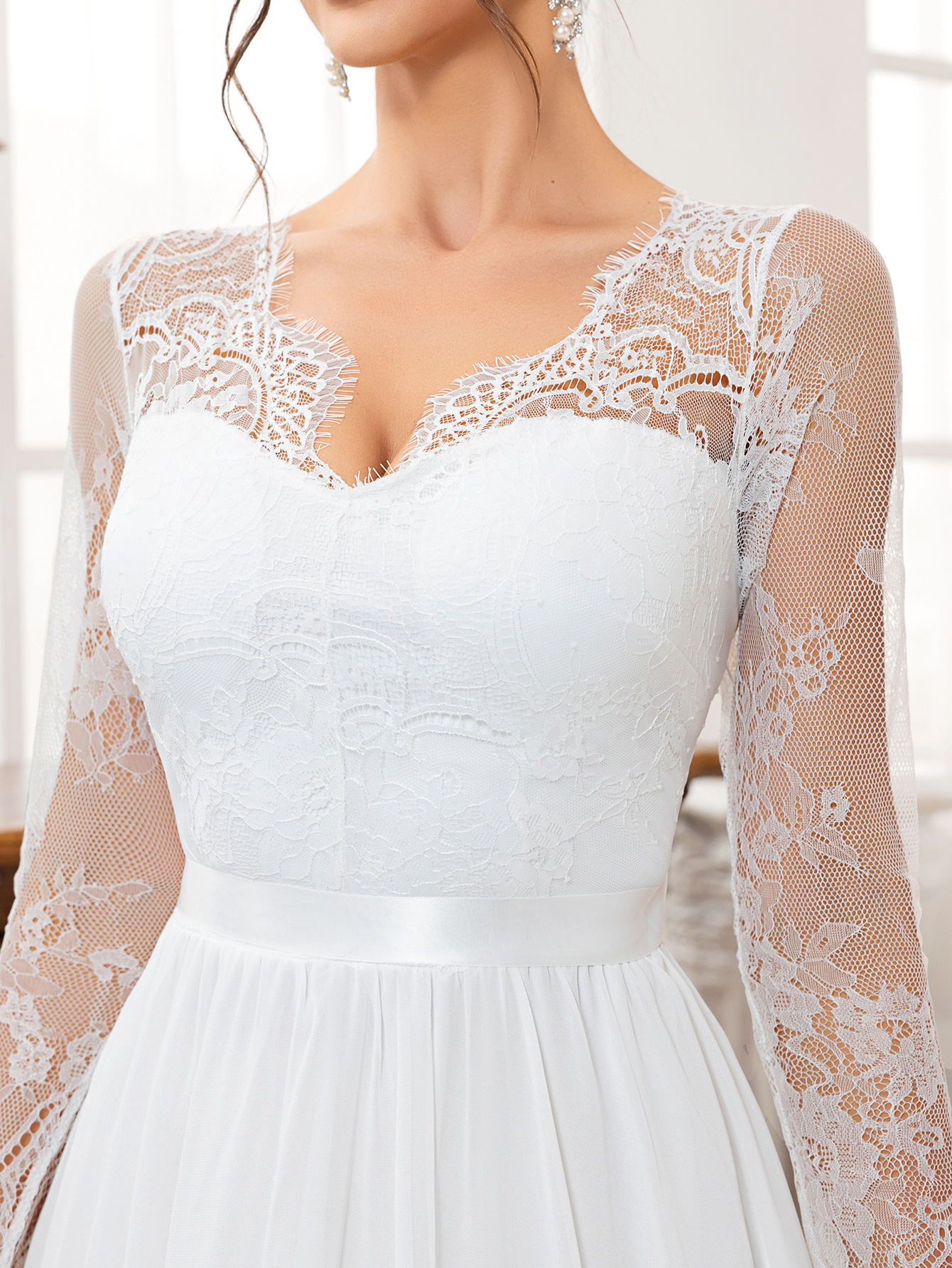 ヨーロッパとアメリカのアマゾン 2025 レースステッチシフォンウエストロング V ネックドレスウェディングドレスイブニングドレス