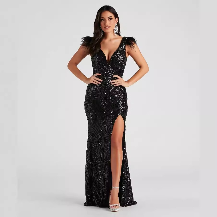 クロスボーダー夏の新しいファッションスリム高密度スパンコール宴会イブニングドレスライトラグジュアリードレス