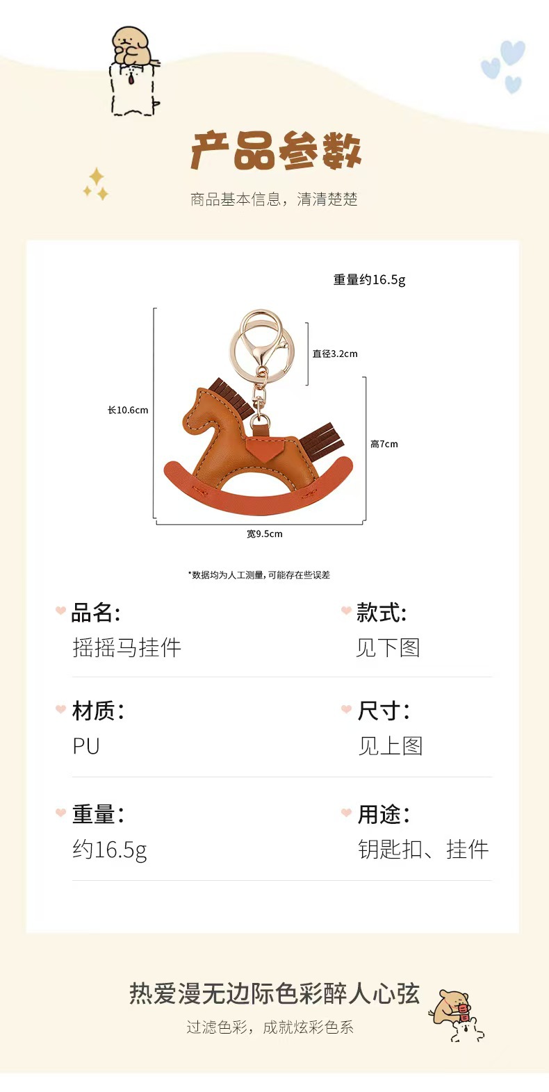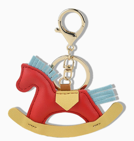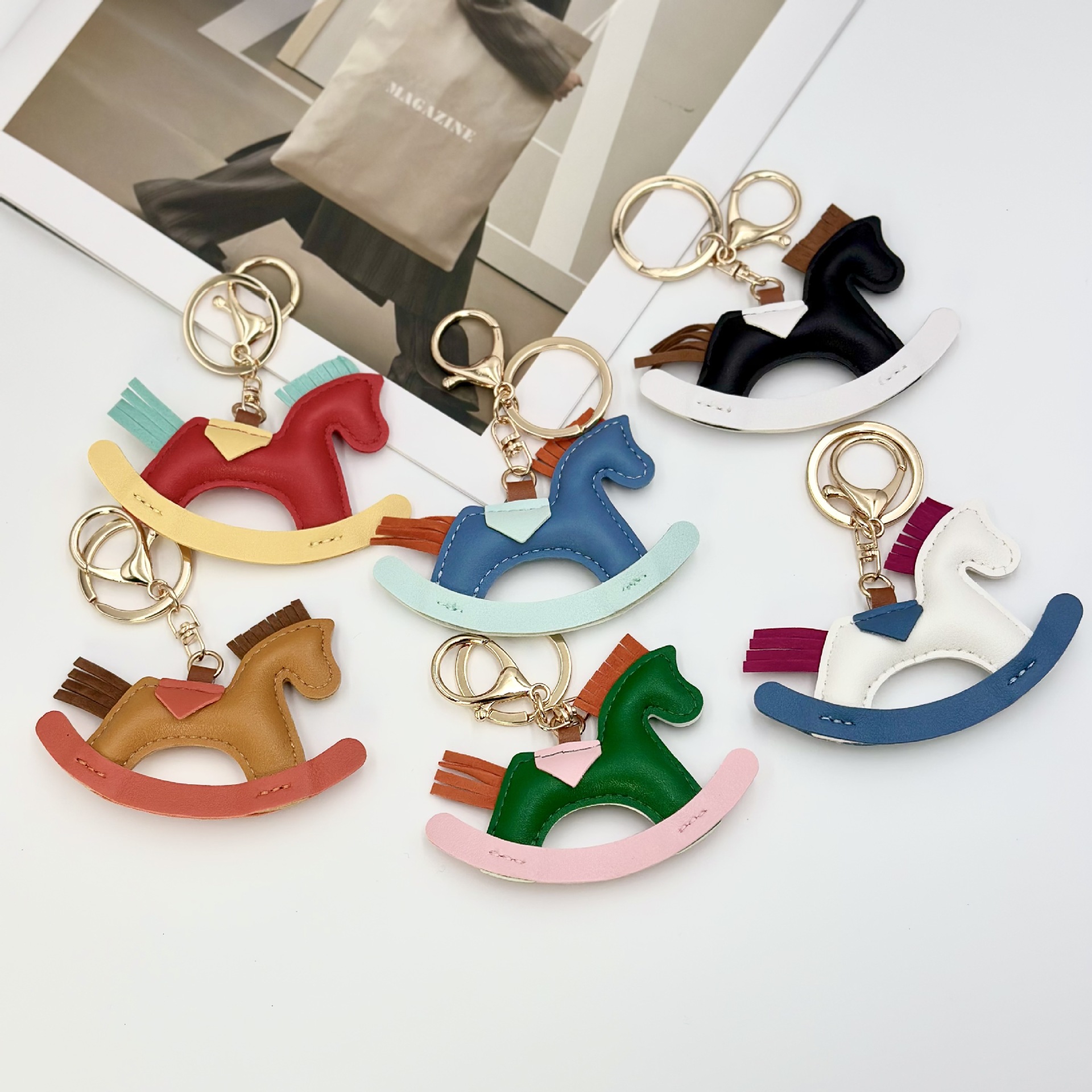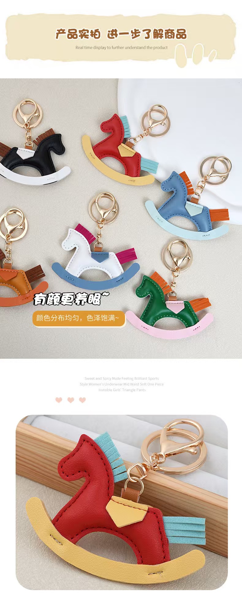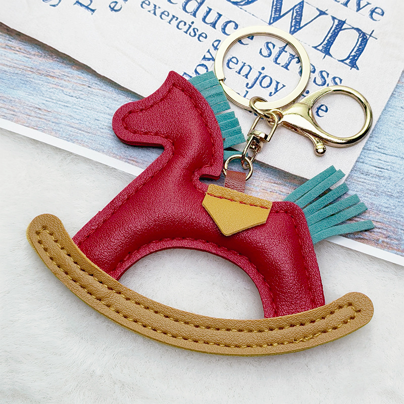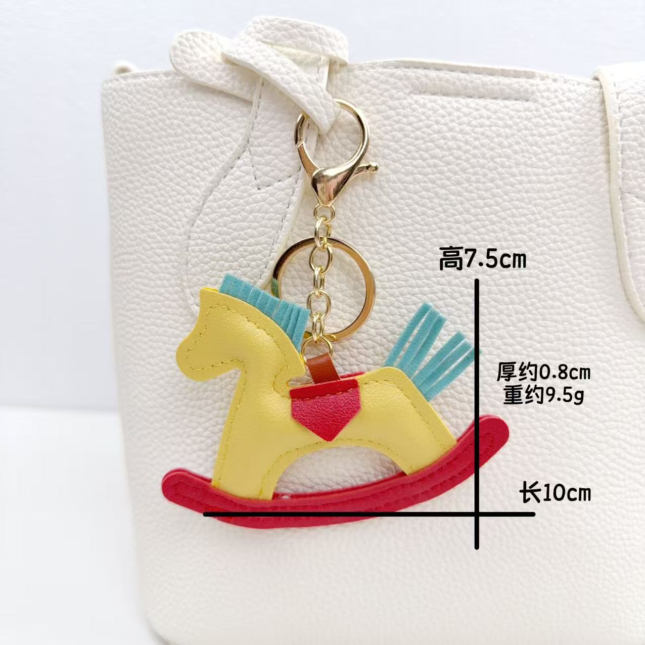 抖音热销皮质摇摇马钥匙扣配饰小马挂件包包挂饰卡通小木马钥匙链