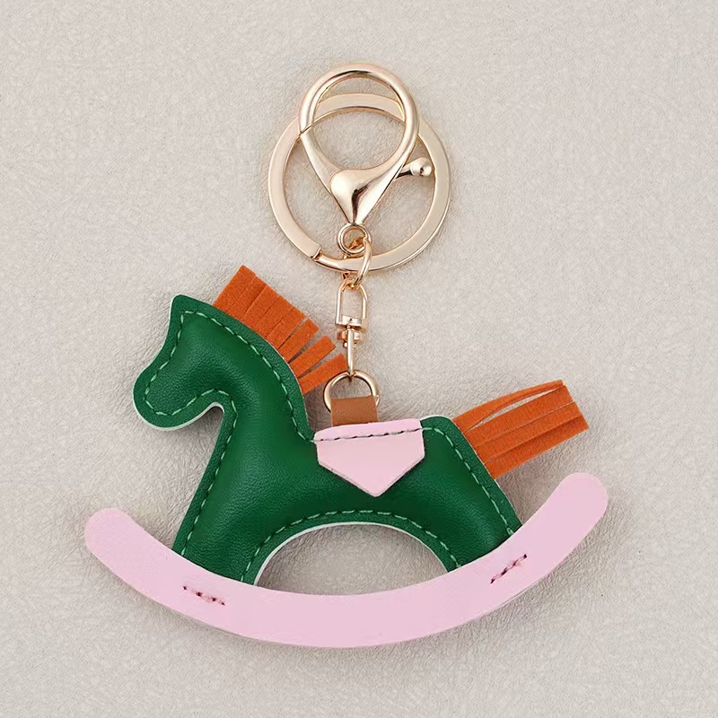 ins手工皮革绿马包包挂件钥匙扣 小马挂件卡通摇摇马皮质挂饰批发