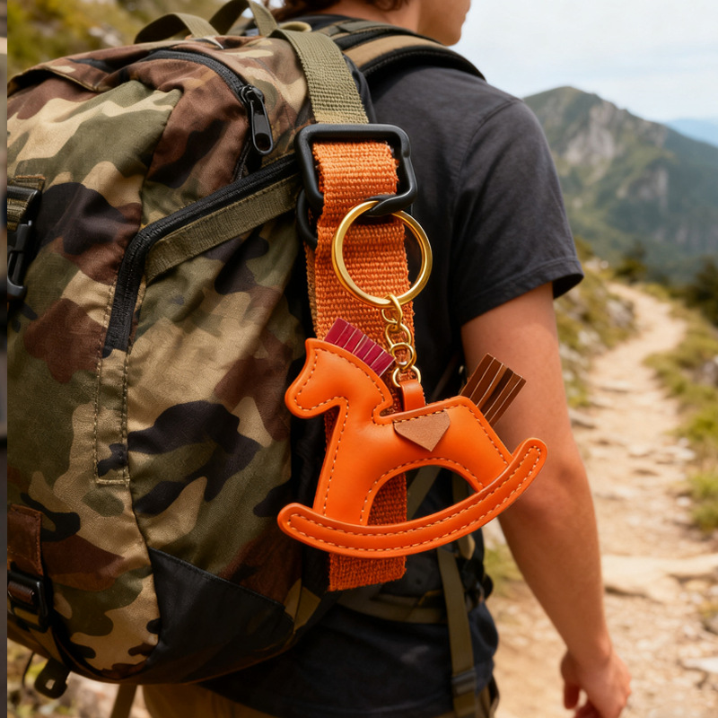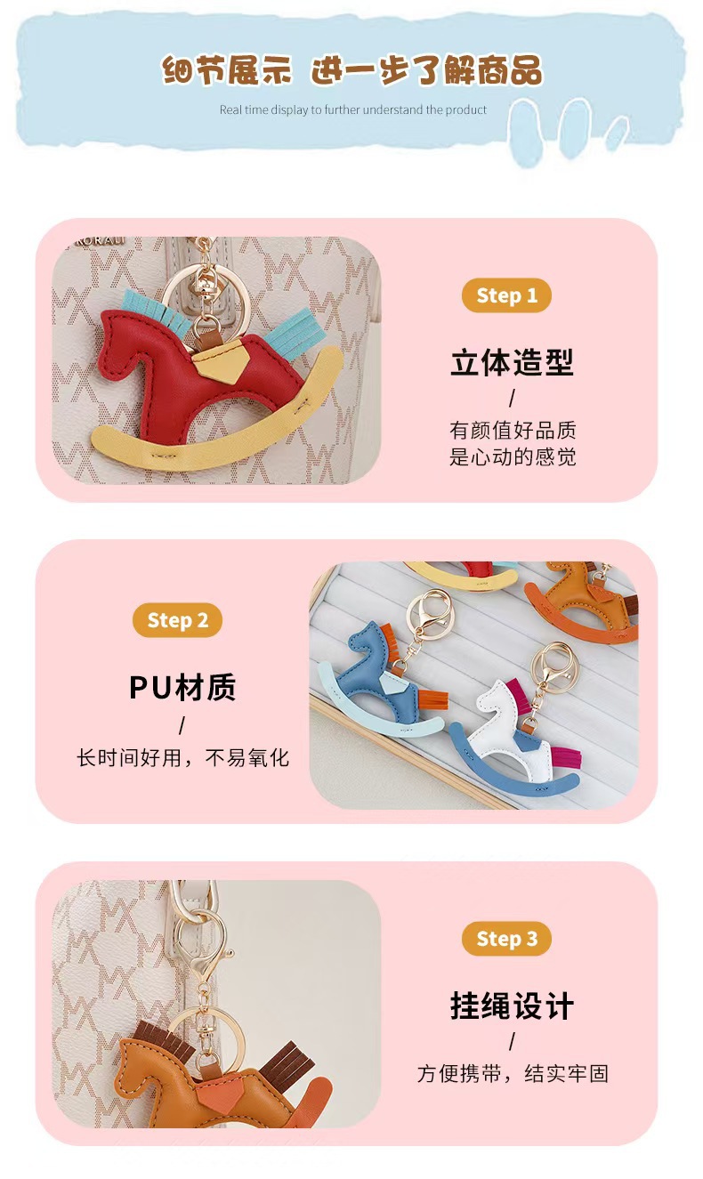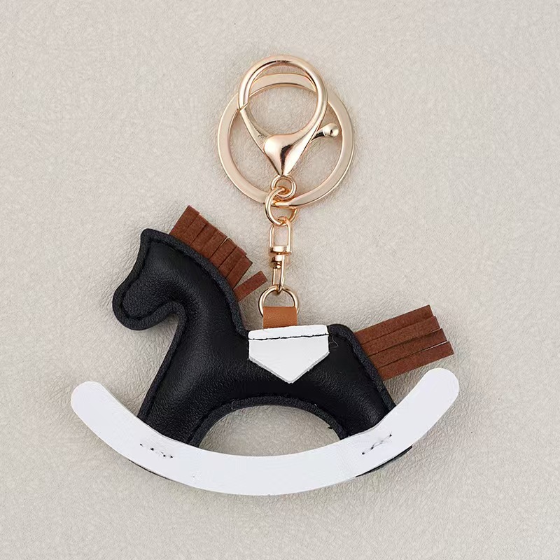趣味小木马pu皮绳挂件百搭包包挂饰摇马汽车来图可定制钥匙扣饰品
