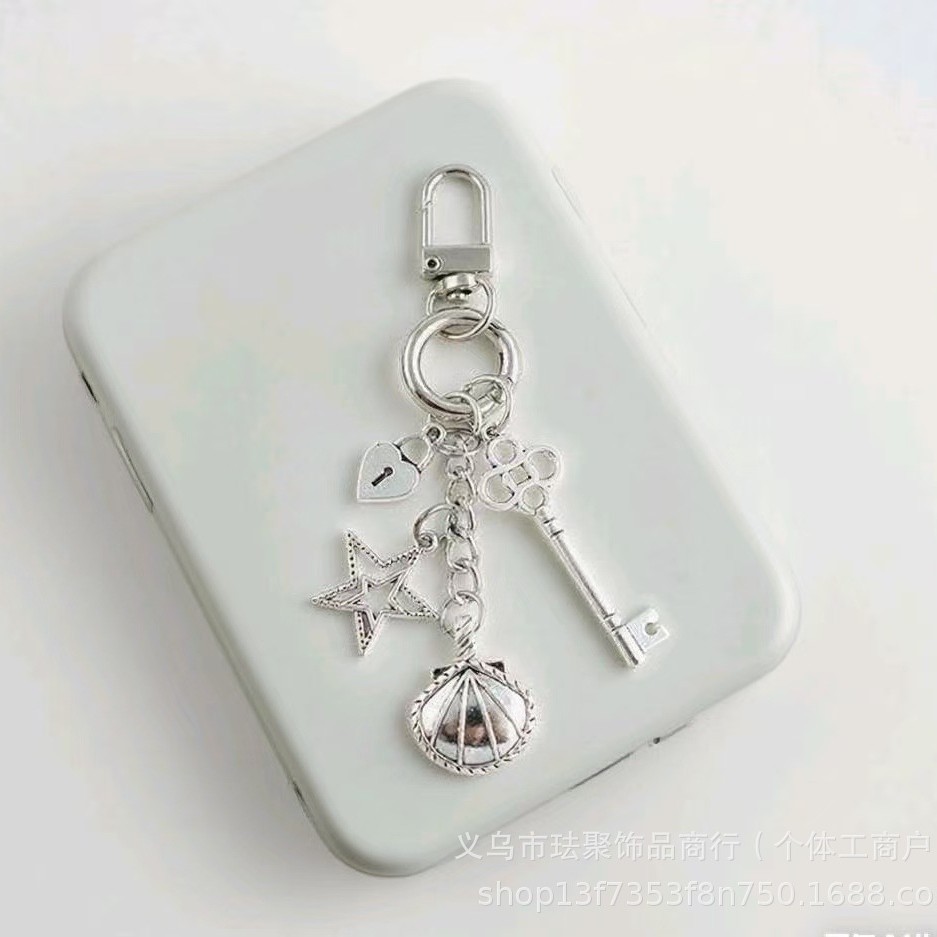 中国風レトロ鍵ストラップ古銀手作り鉄塔貝殻金属個性創意レトロ包みストラップ