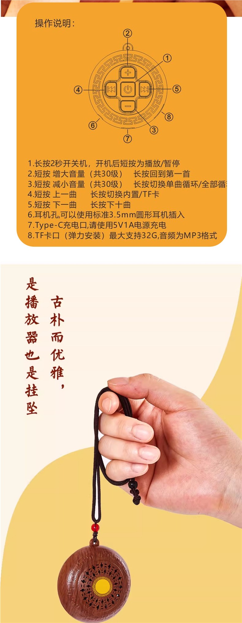 28 曲を内蔵、電源を入れるとすぐに再生、TF カードをサポート