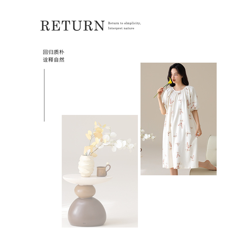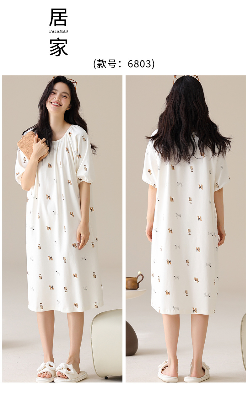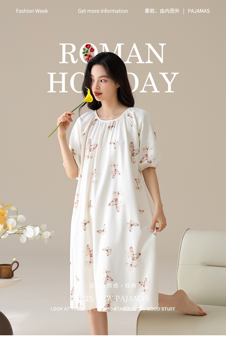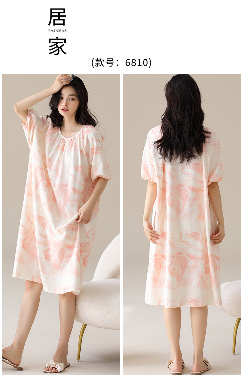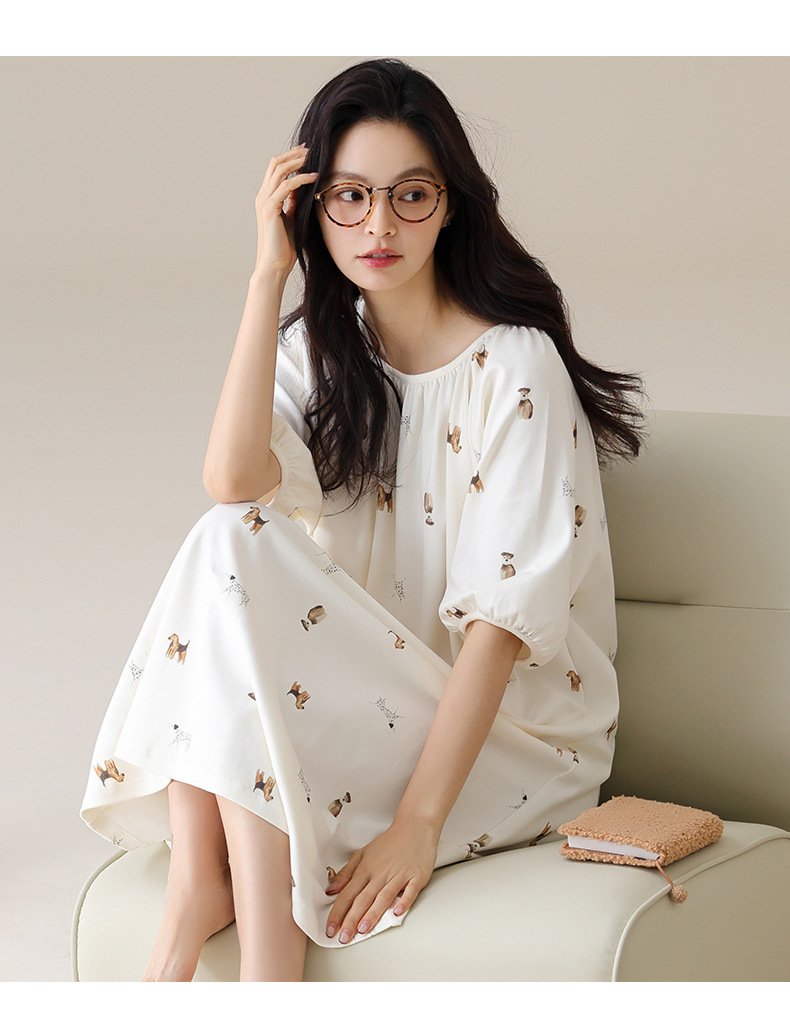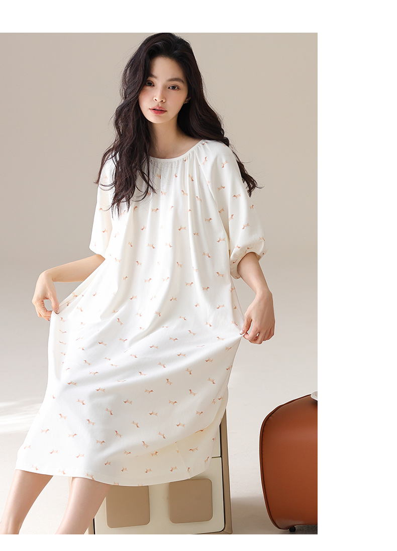モーダルパジャマ女性の夏の新しい睡眠スカートの中で、長い丸首の提灯の袖の大きいサイズは女性の家の服を着ることができます。