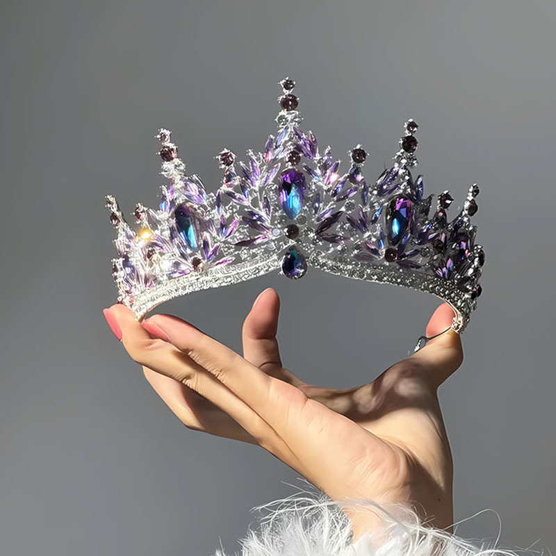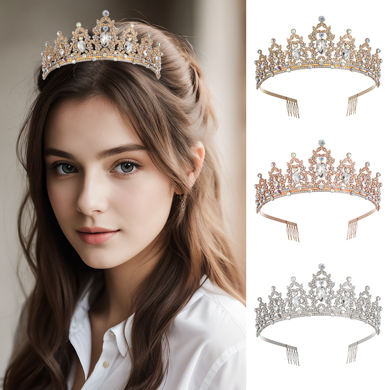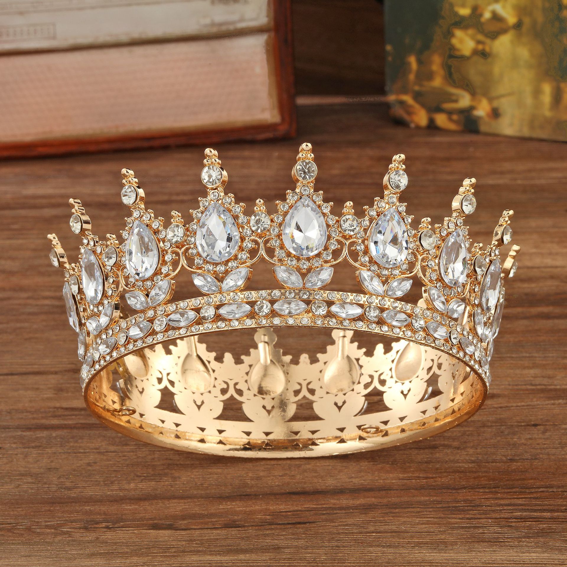 跨境圆冠巴洛克合金圆皇冠水钻头饰生日成人礼皇冠圆型王冠皇冠女