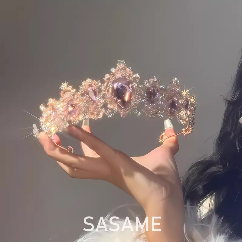 欧美新娘皇冠头饰合金镶水钻粉水晶王冠婚纱配饰跨境爆款发冠批发