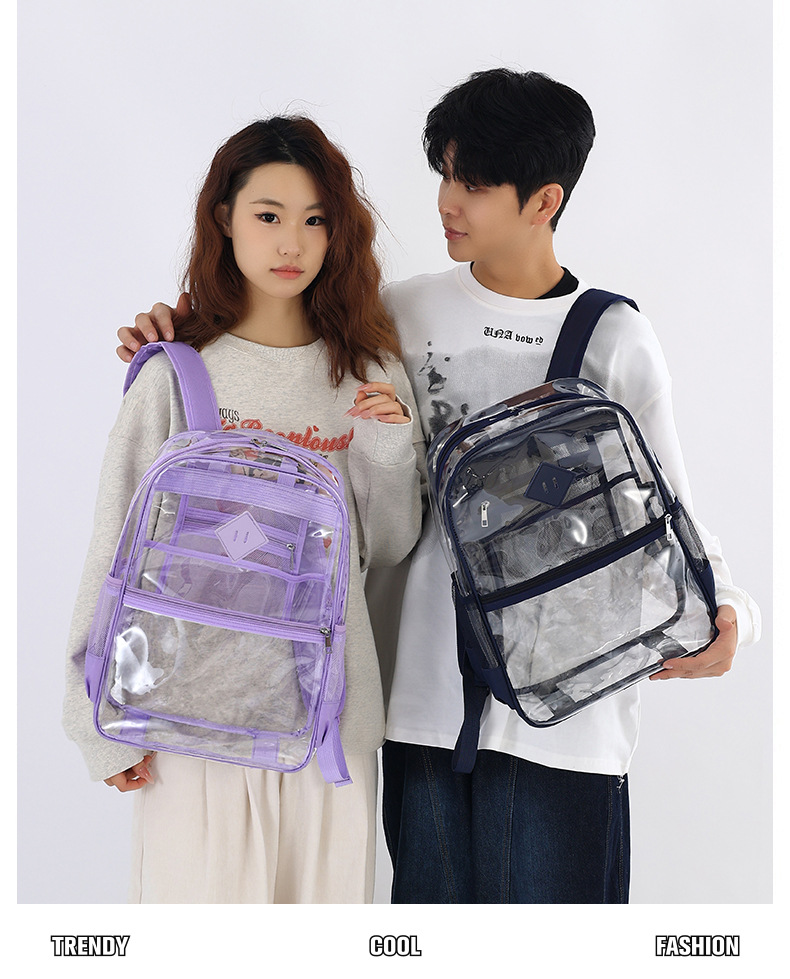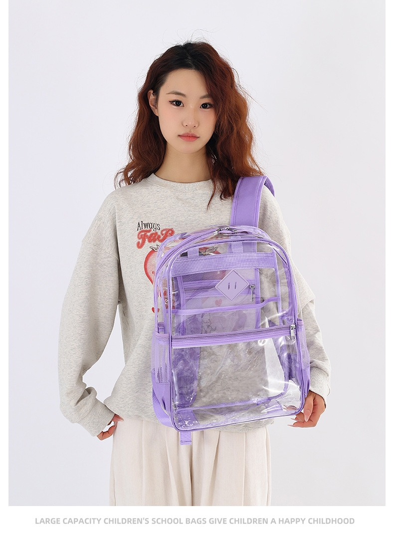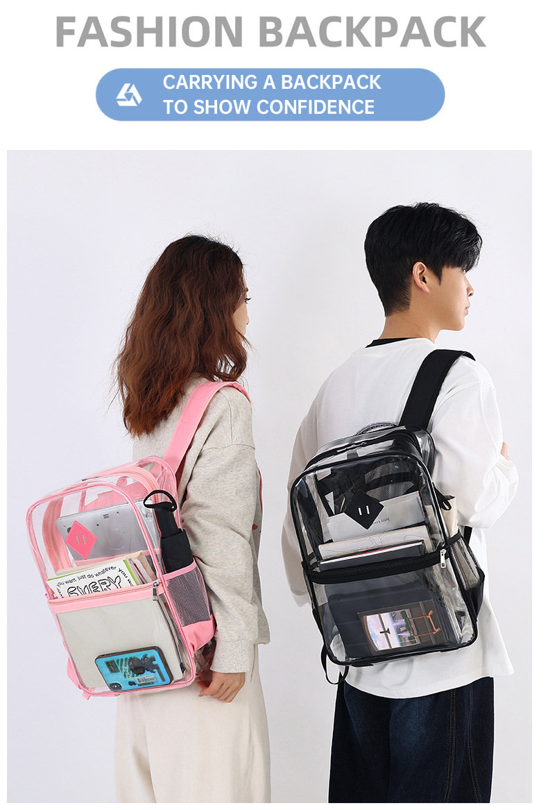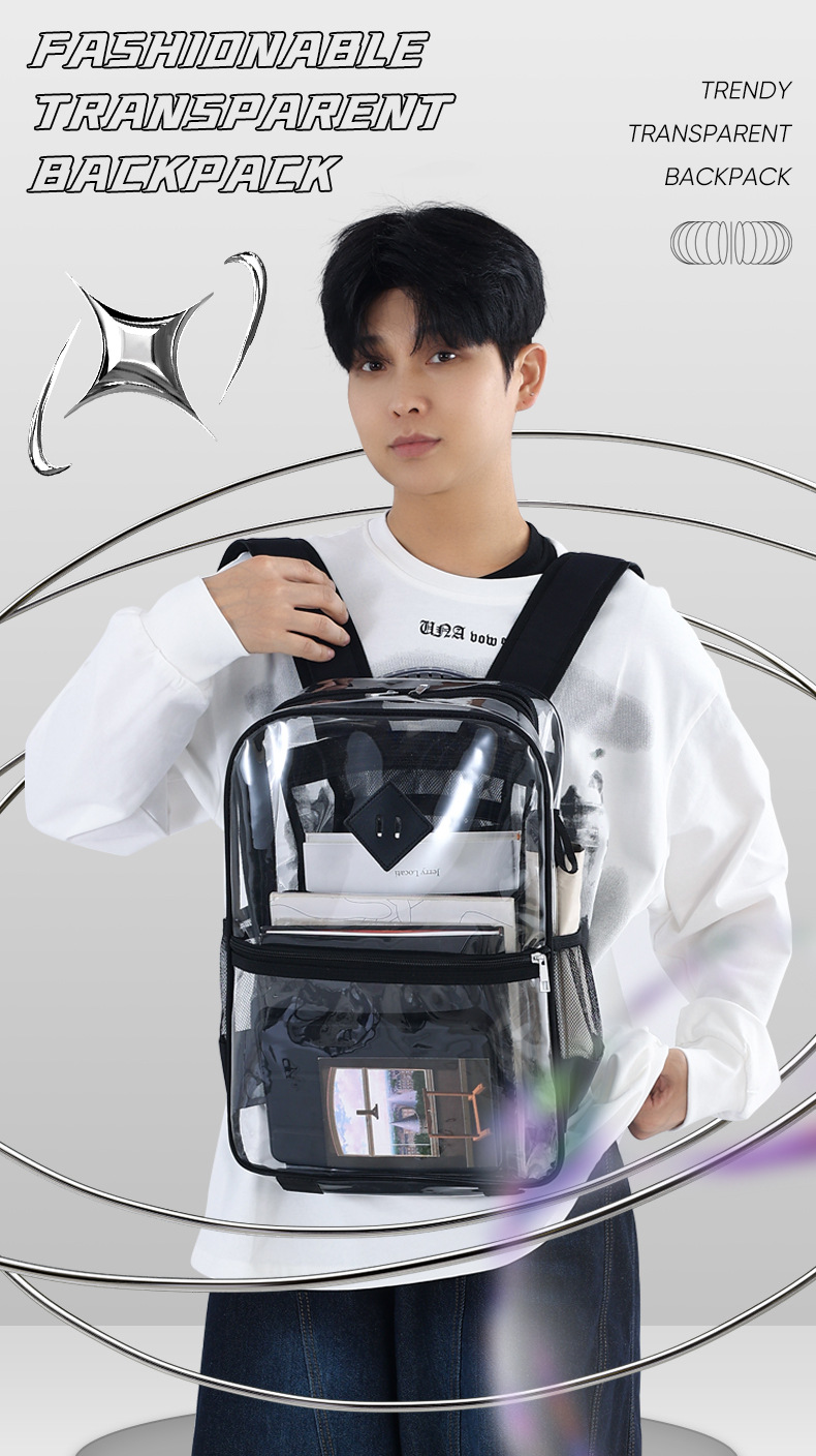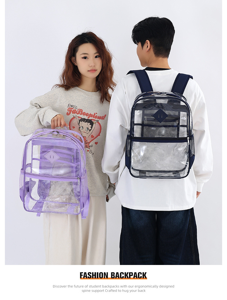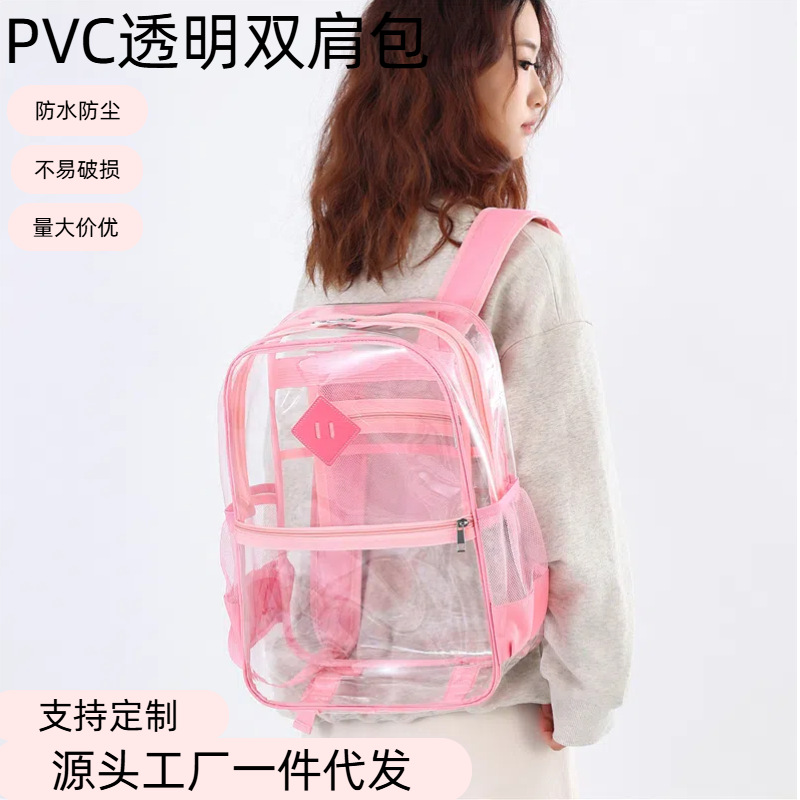 国境を越えた人気の透明バックパックスタジアム PVC 透明バッグ在庫小中学生大容量旅行バックパック
