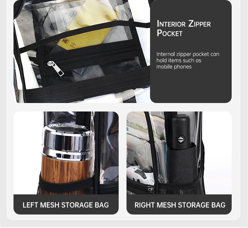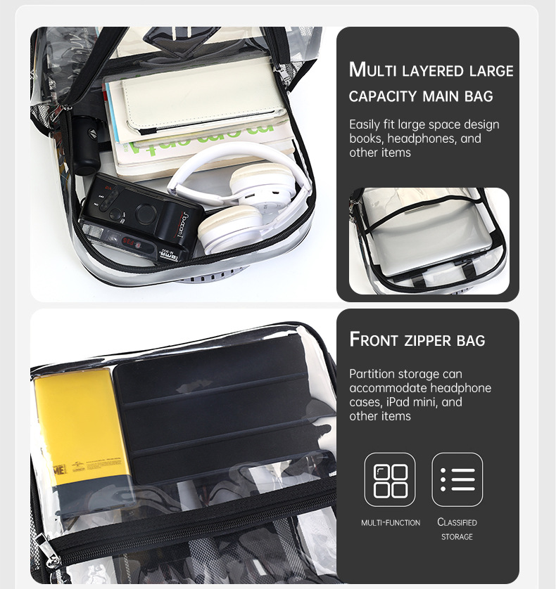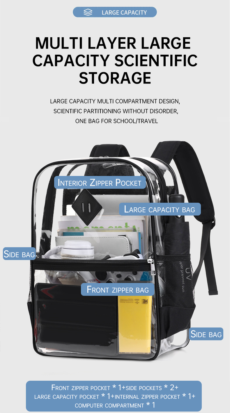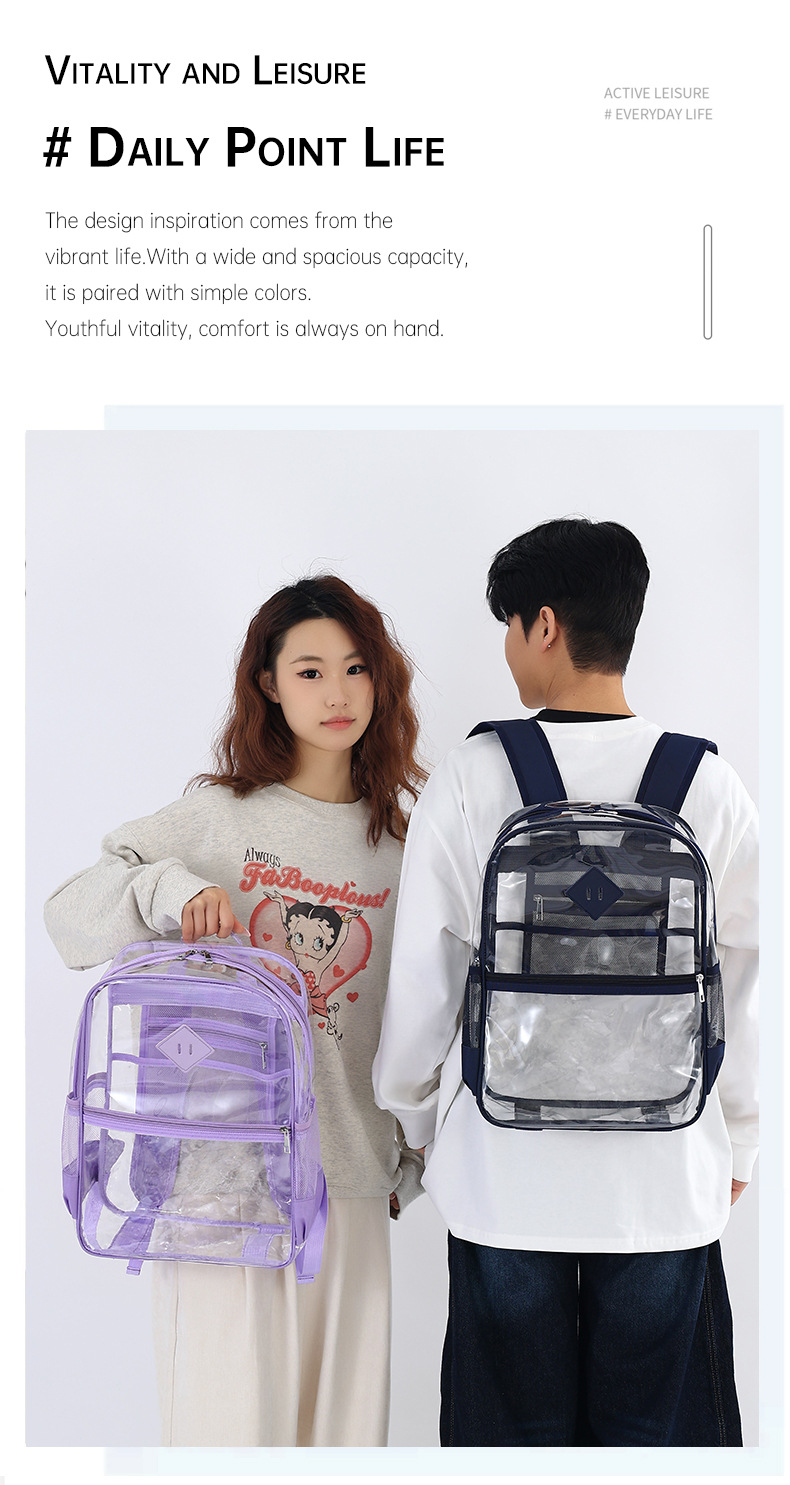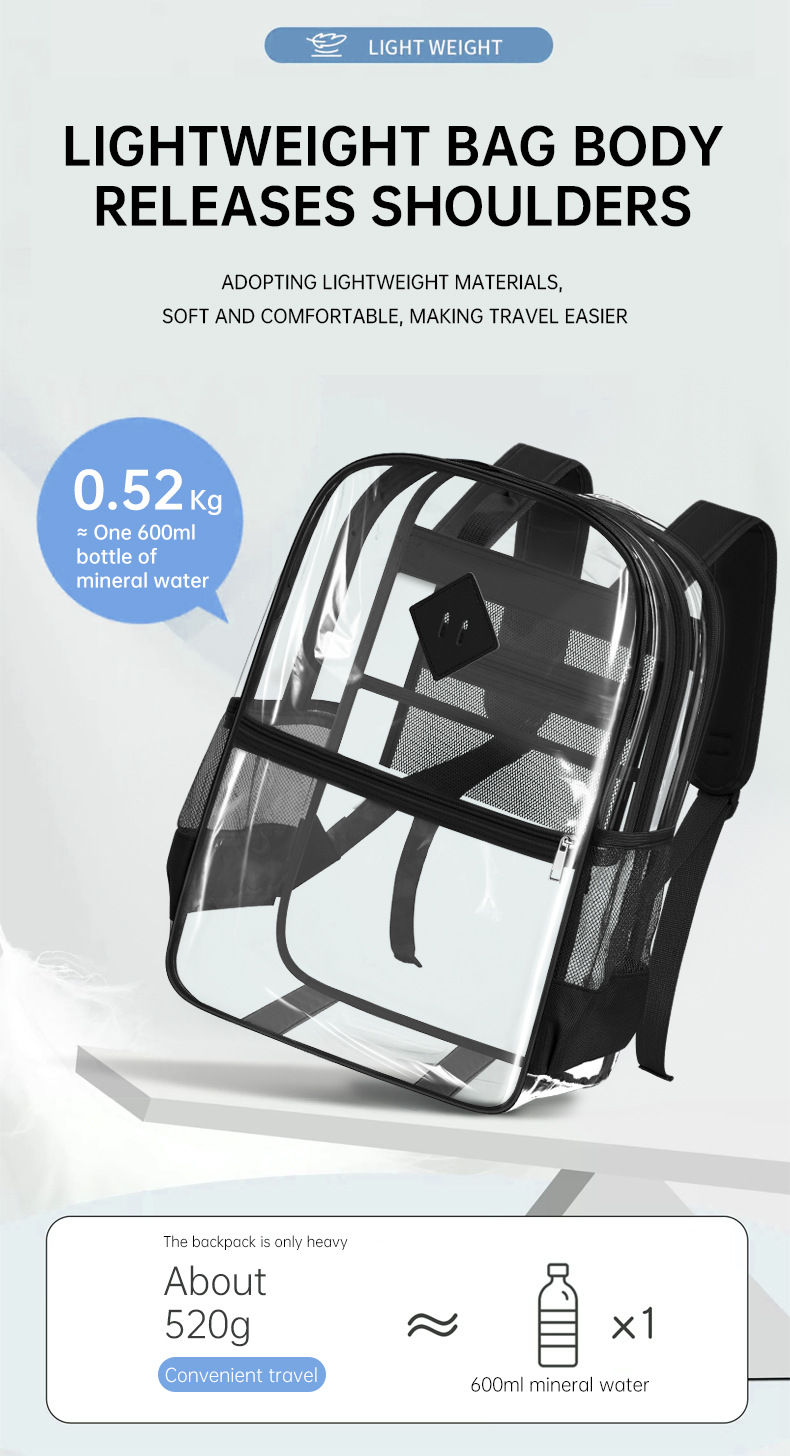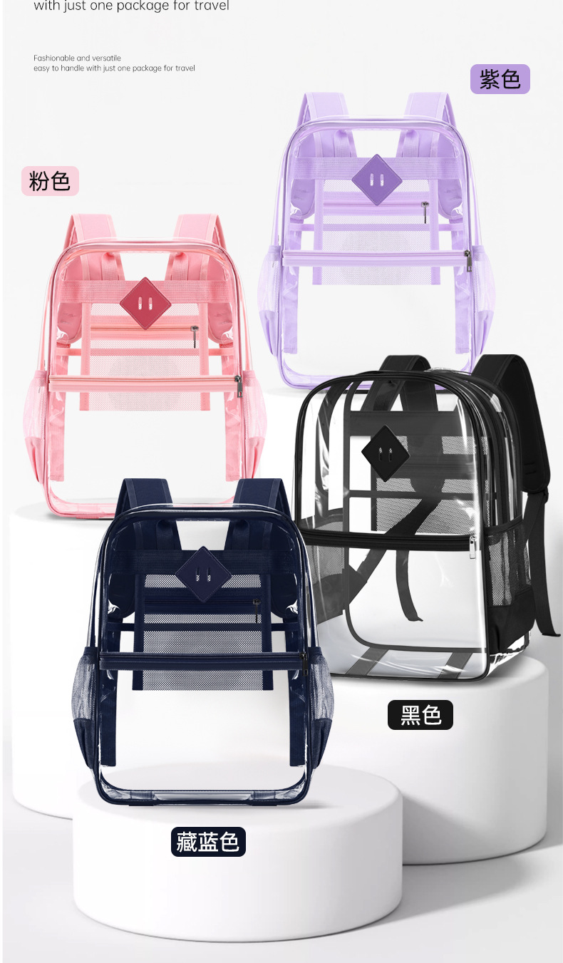 国境を越えた人気の透明バックパックスタジアム PVC 透明バッグ在庫小中学生大容量旅行バックパック