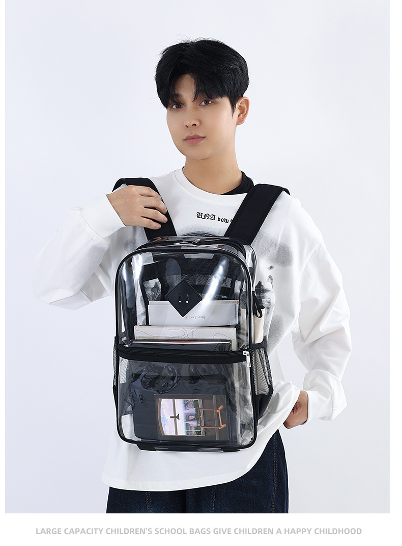 国境を越えたアマゾン透明ランドセル中学校スタジアムコンサート透明バッグ大容量PVC学生バッグ