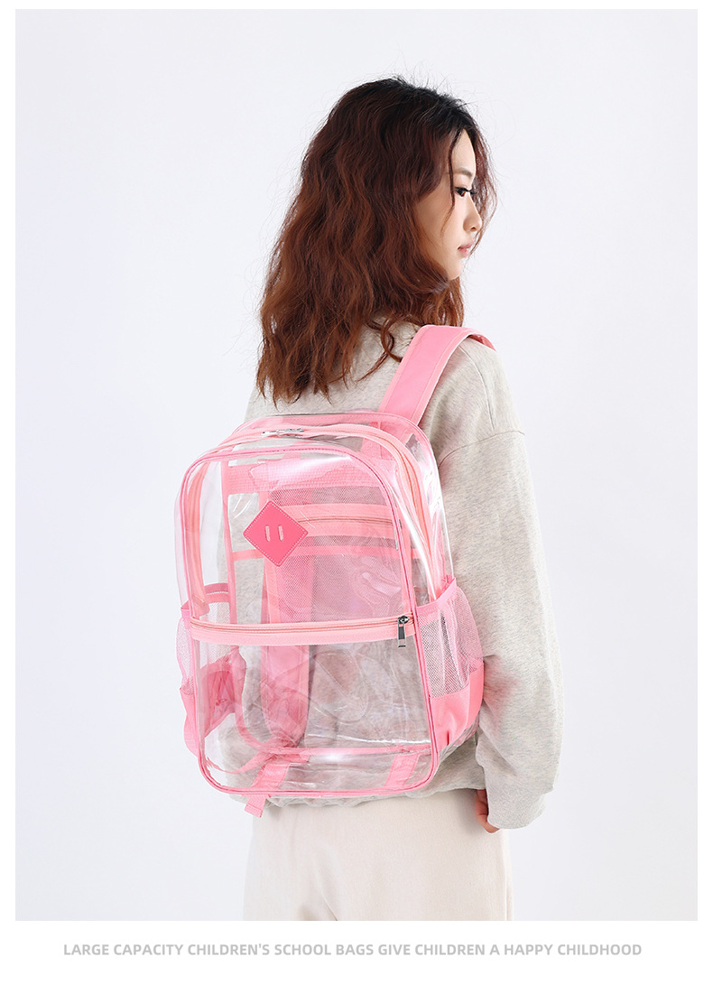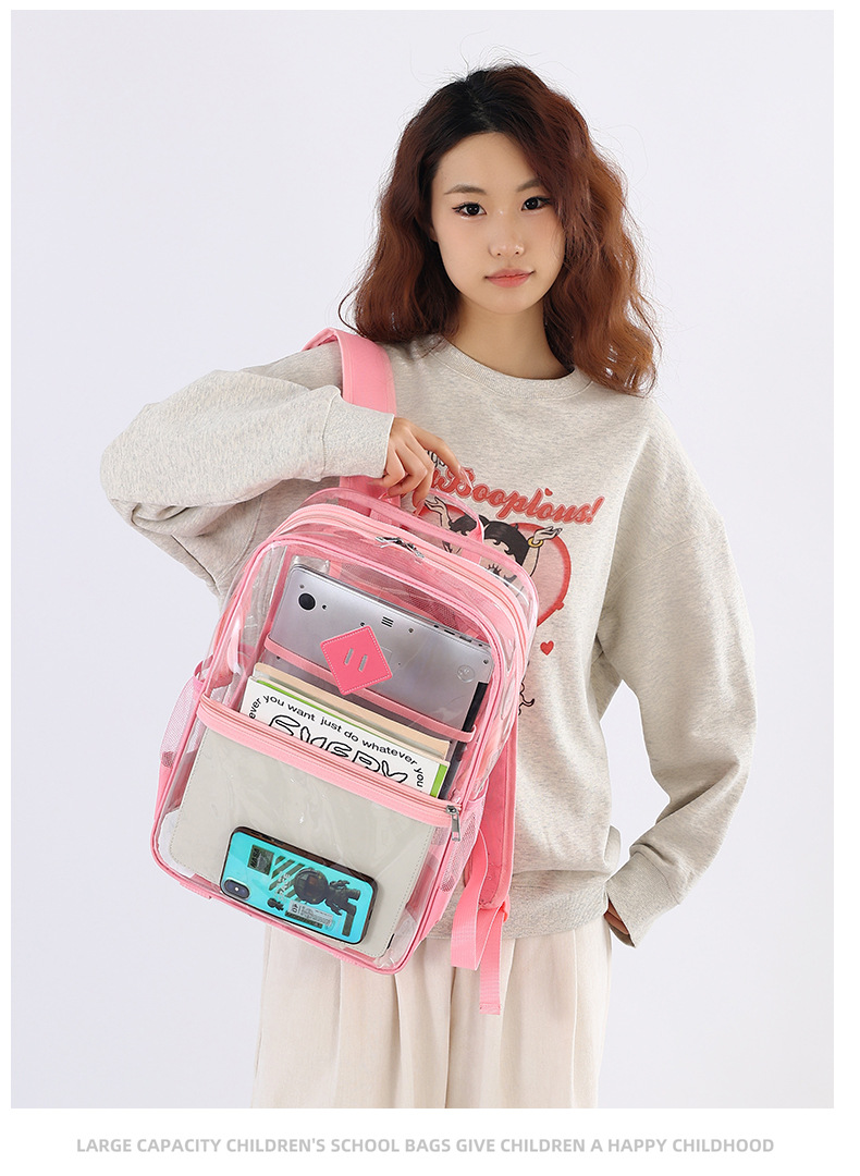 源头工厂现货透明双肩包大容量中小学生书包高颜值轻便防水背包女