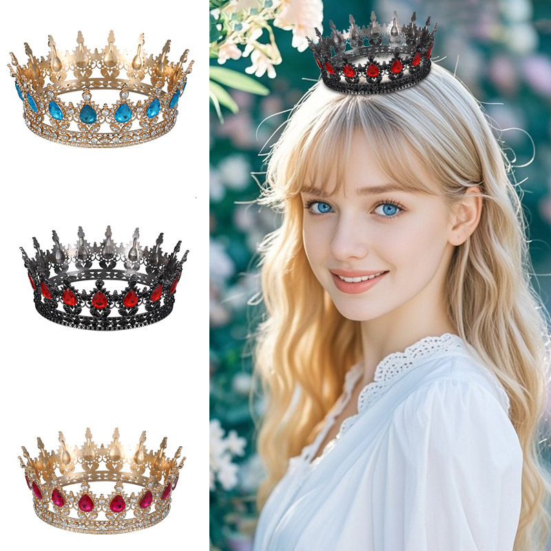 欧美热销巴洛克新娘皇冠头饰水滴钻圆形选美王冠皇冠女王演出皇冠