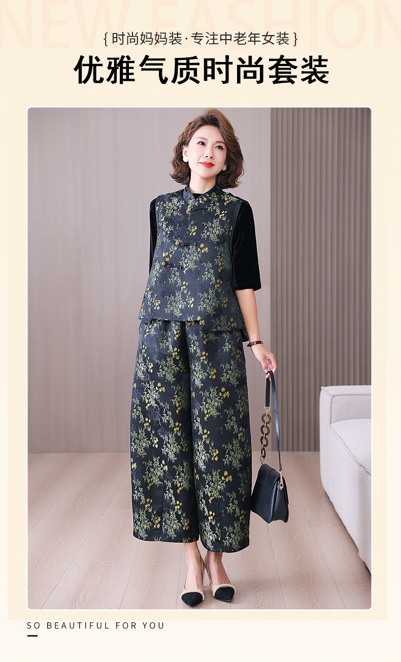 2025新款时尚马甲高级感中年妈妈装新中式阔腿裤气质两件套