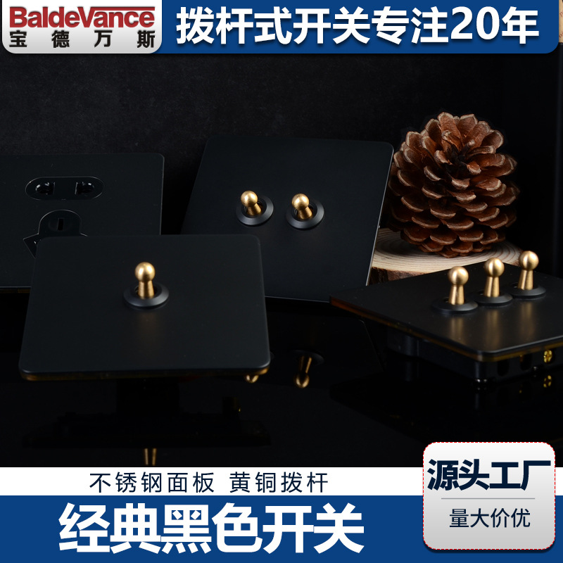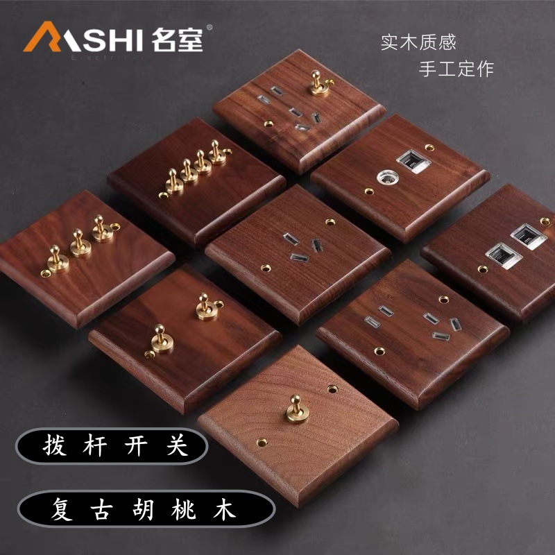 宝徳万斯黒胡桃実木パネル真鍮レバー式復古スイッチ民宿擬古風美学ソケット