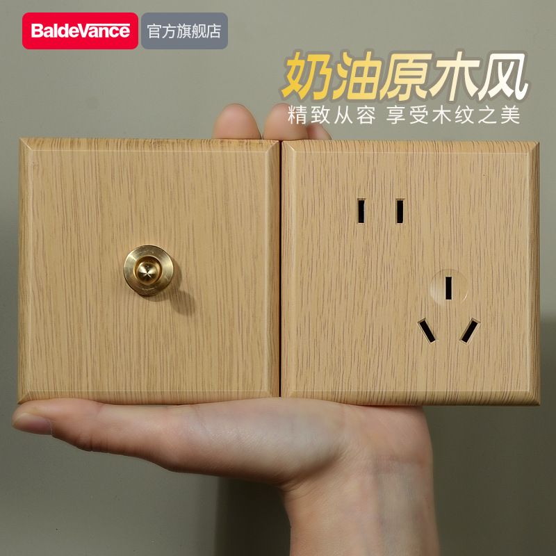 2025 新しい Baodevance クリームスタイルスイッチパネル 86 壁 1 オープン 5 穴ソケットレトロ木目調スイッチ