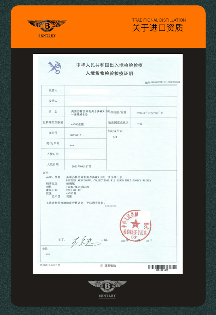 梱包仕様 ベントレー モルト ウイスキー シングルボトル 700ml