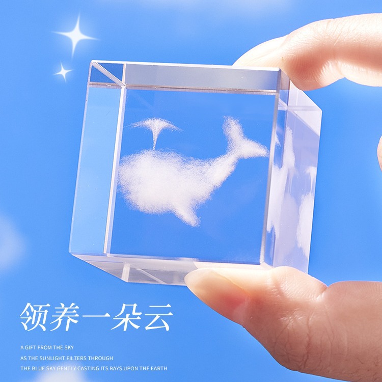 雲の立方のデスクトップの置物の机の水晶の角の3d内の彫刻は女子学生の大衆の高級感の癒しの卸売りを送ります。