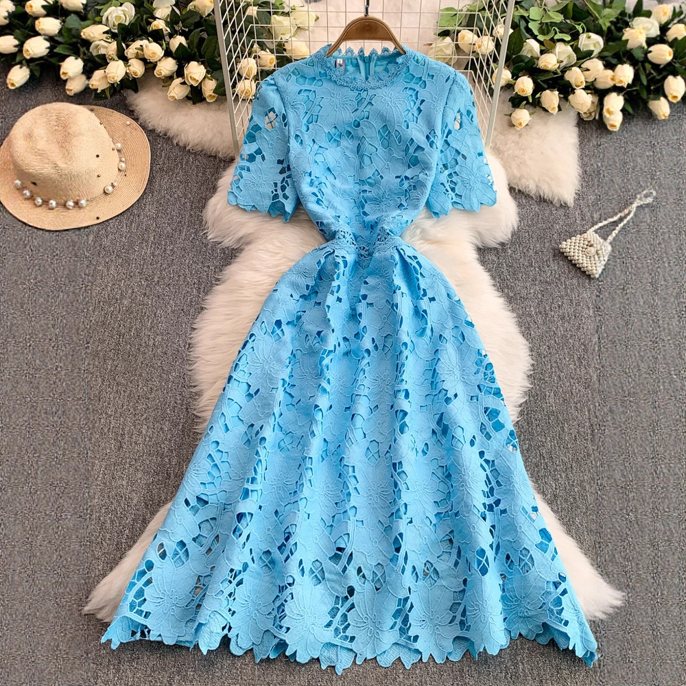 郵便フランスレトロ名媛風名媛気質ドレススカート心機透かしレース半袖ワンピース女夏