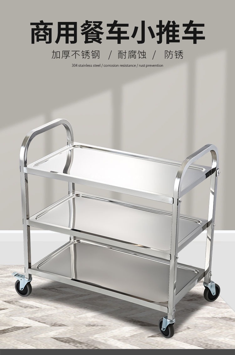 ステンレス製食堂車のカートを厚くして二、三階ホテルの商用レストランの酒場車を移動して食事を送る手押し車