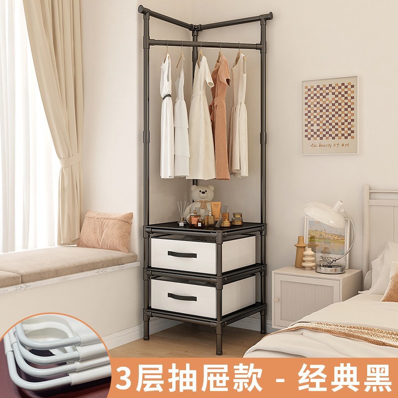 太くなったコーナーのコートラックの床置き式二合一寝室の縦型ハンガーの物干し神器多機能収納棚