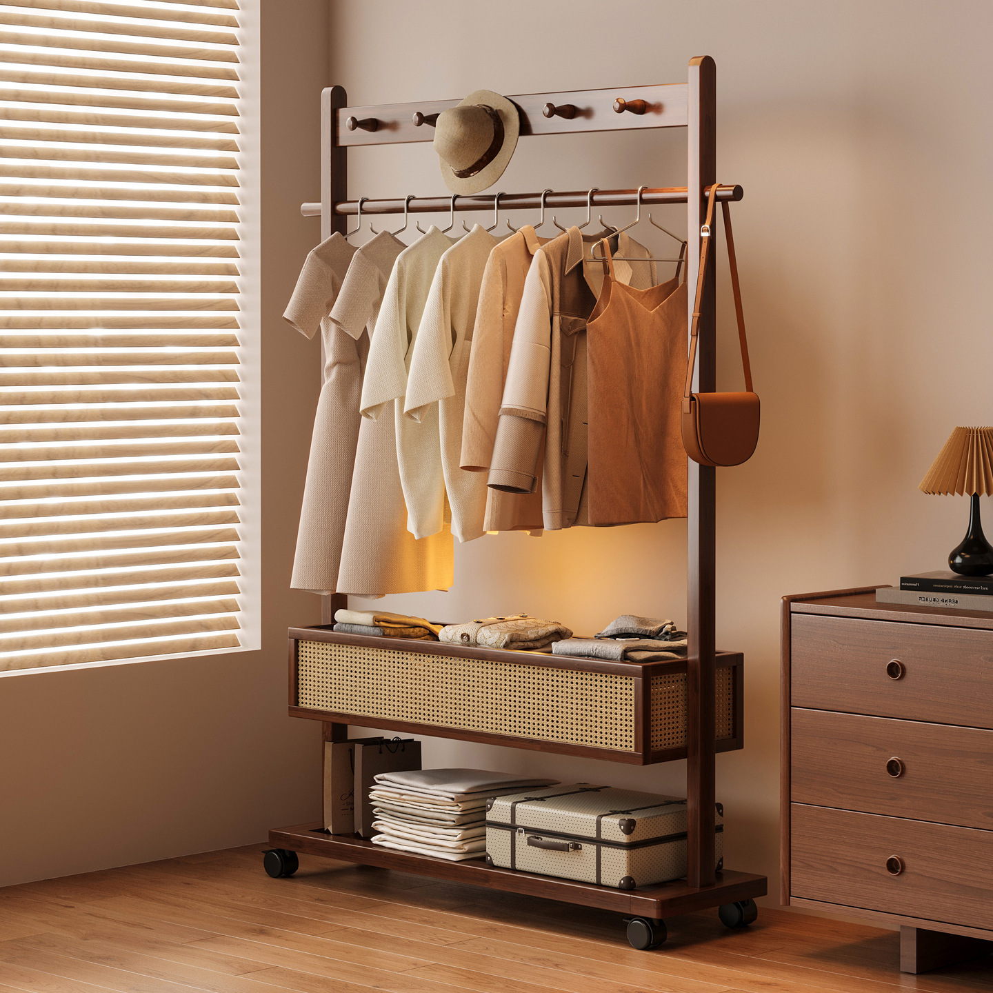 挂衣架带储物柜家用简易房间挂衣服落地卧室衣帽多功能置物架2026