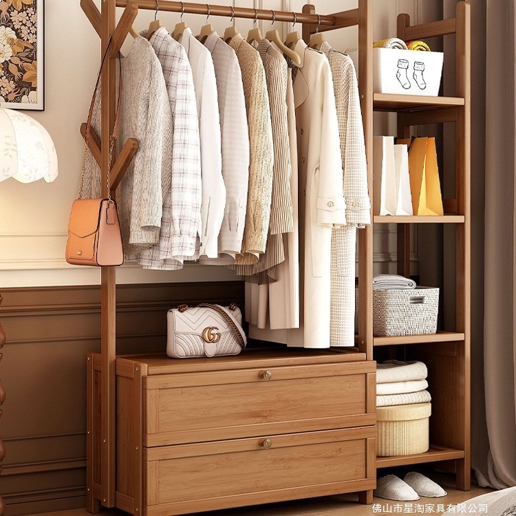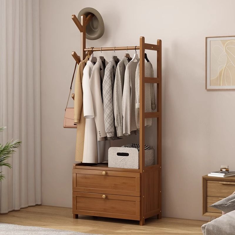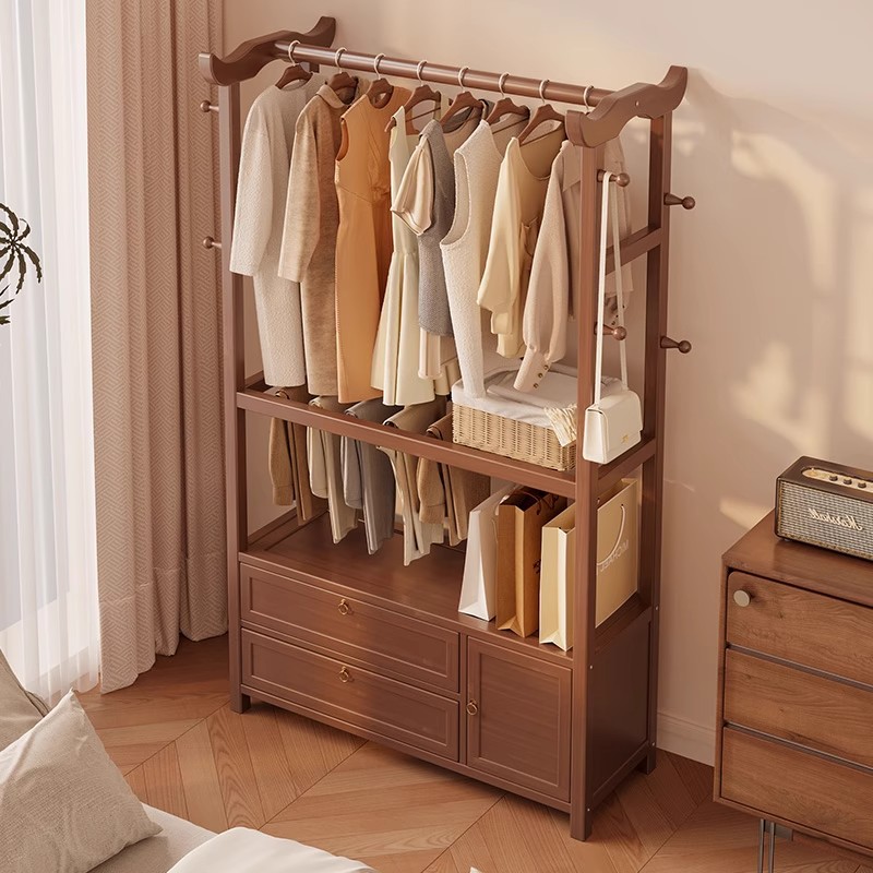 实木衣帽架落地衣架 家用卧室挂衣架带抽屉收纳置物架