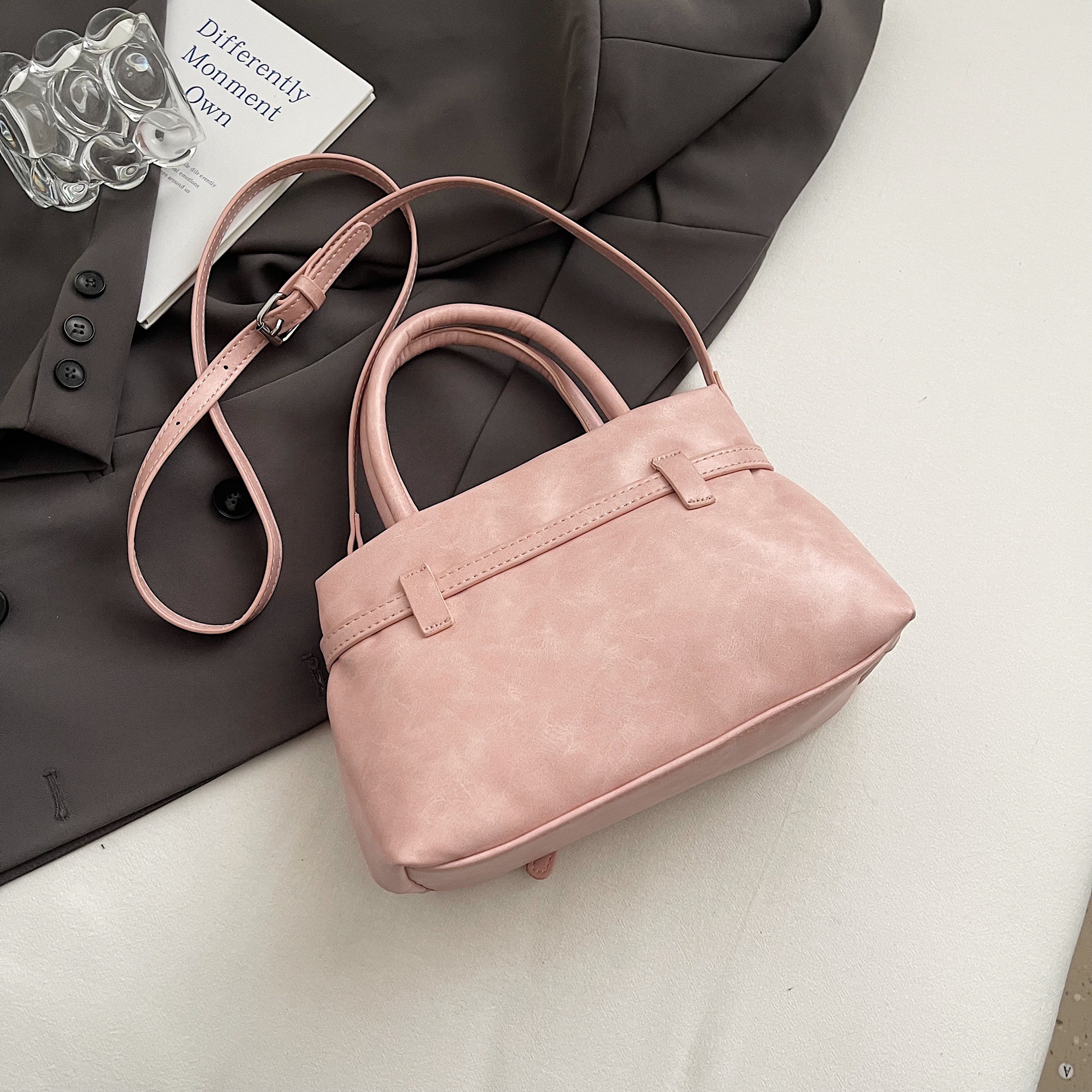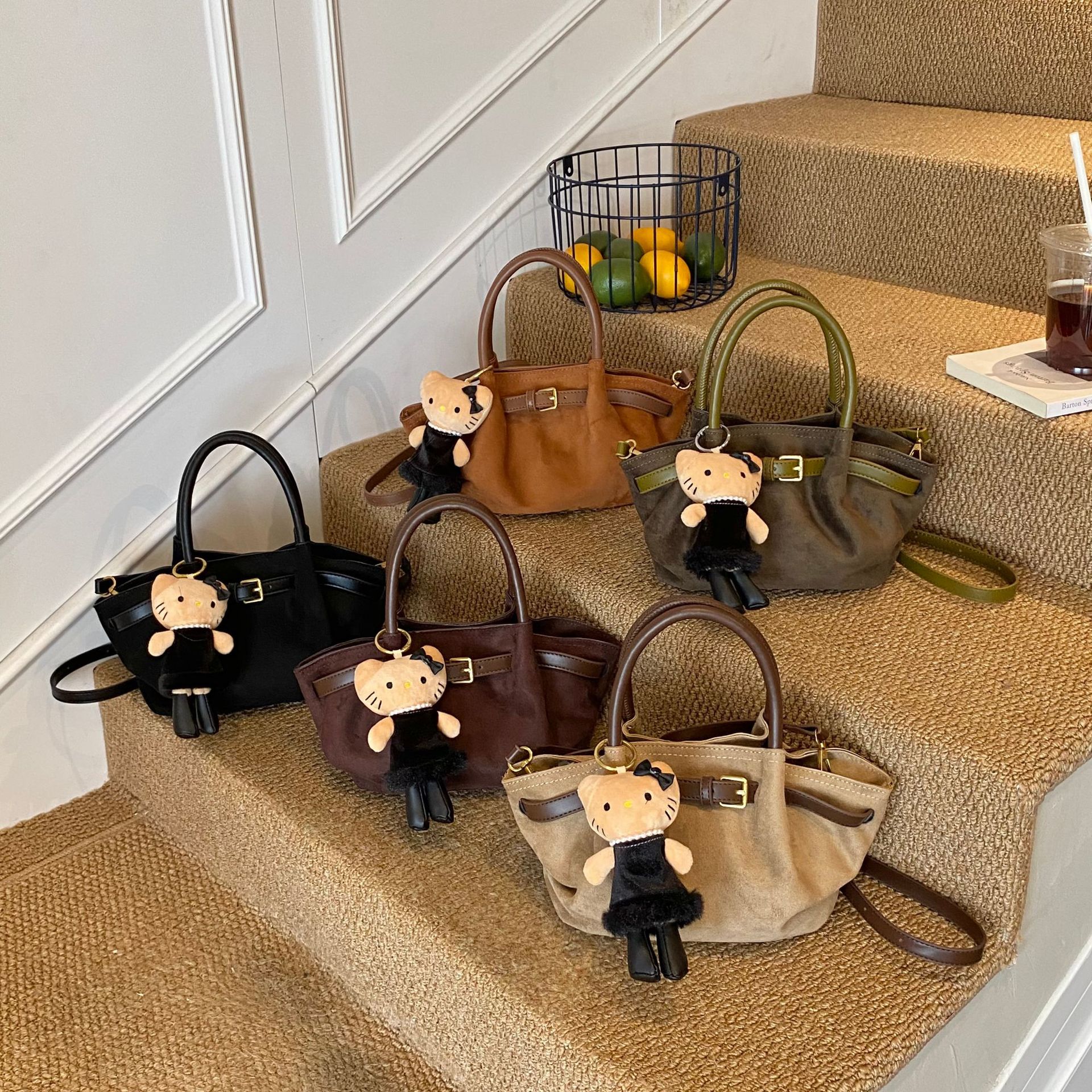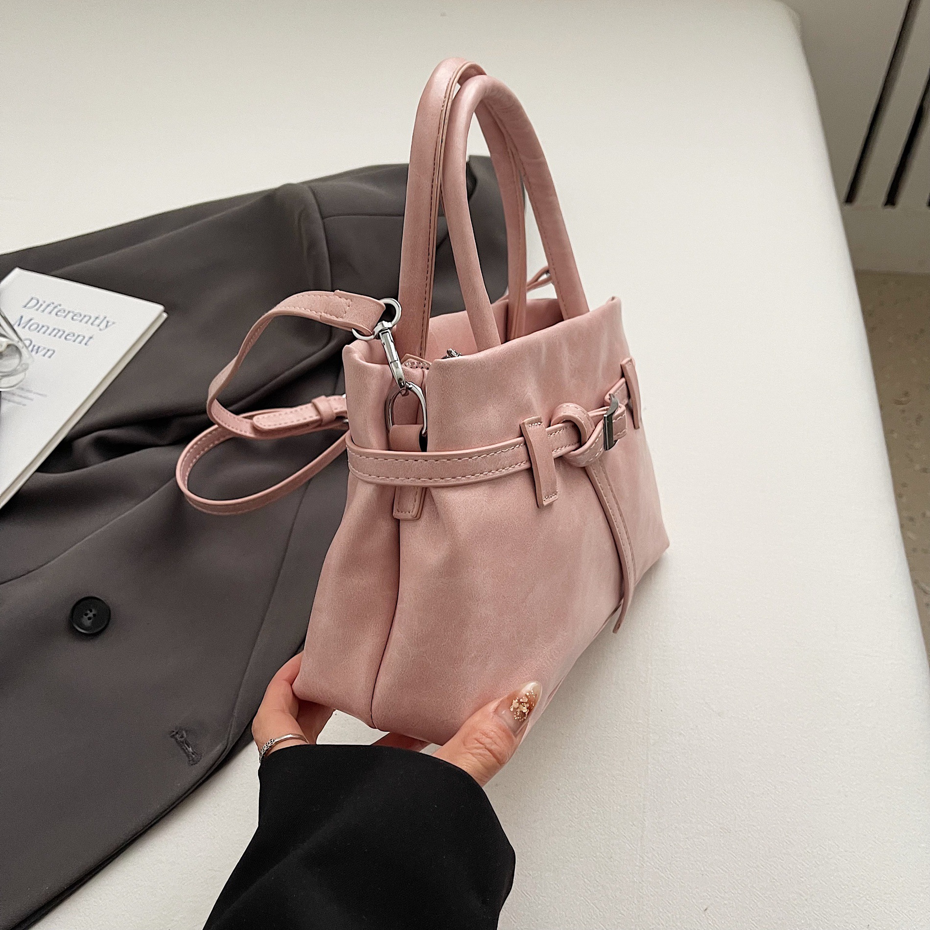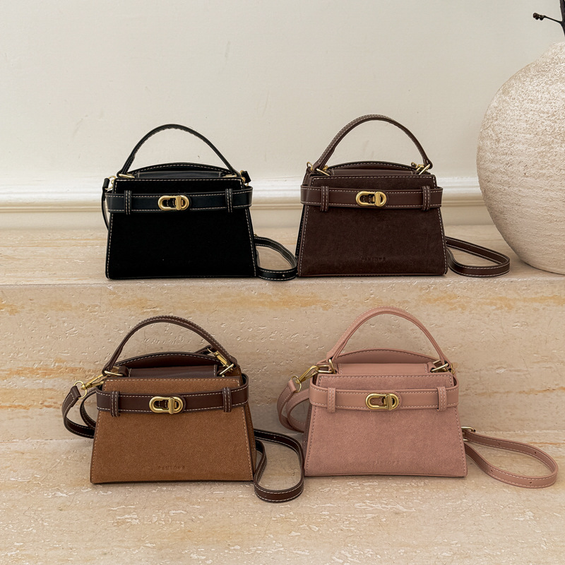 高级小众复古凯莉包麂皮绒时尚简约洋气单肩斜挎包小众个性手提包