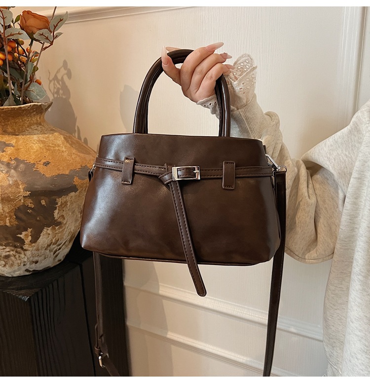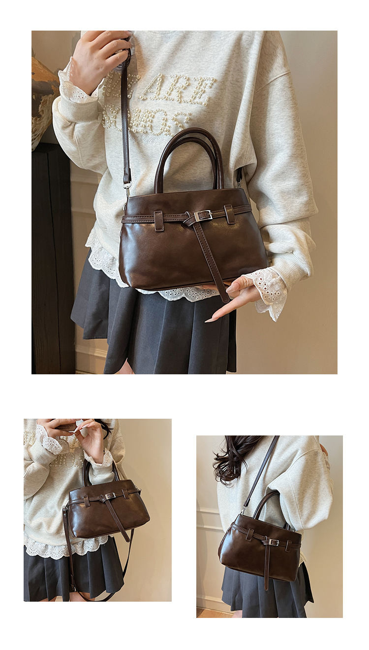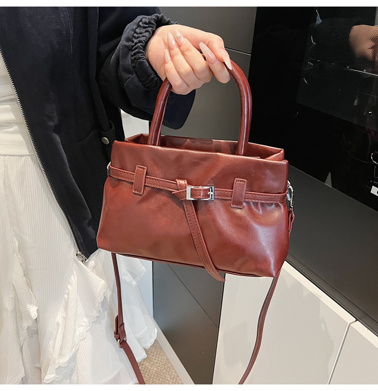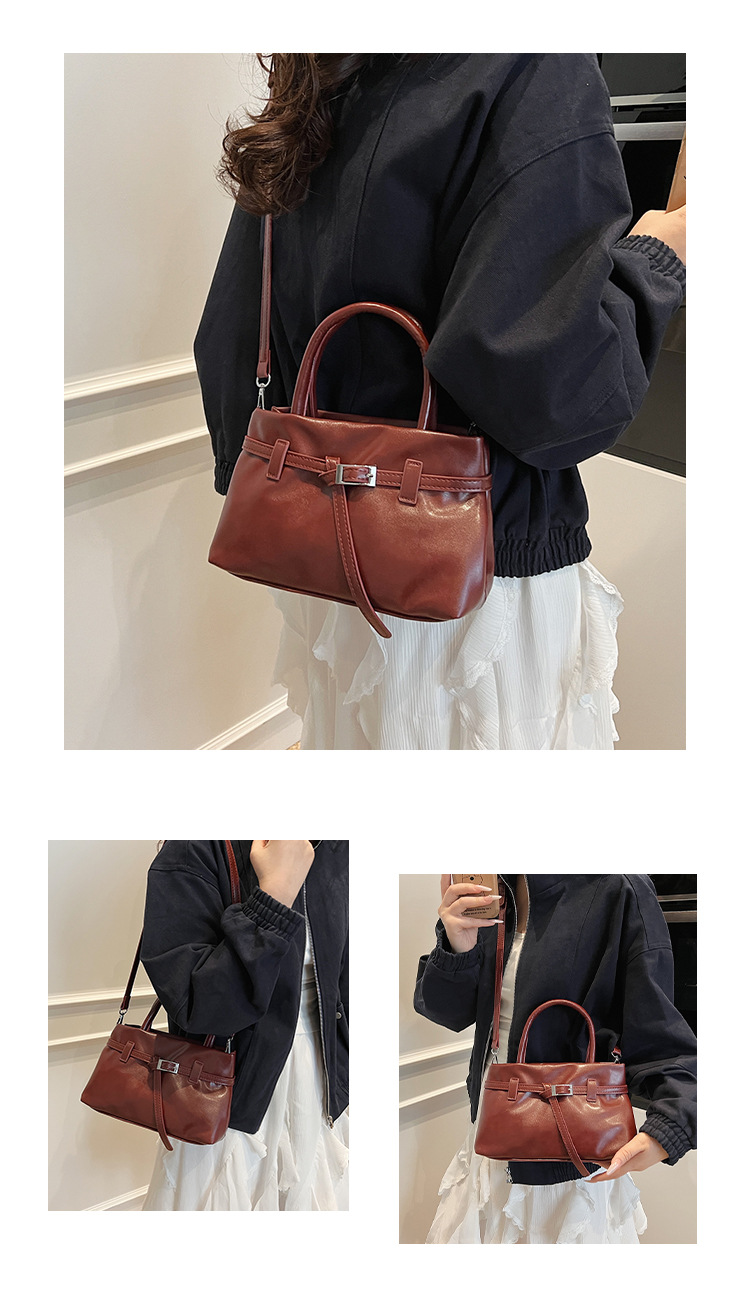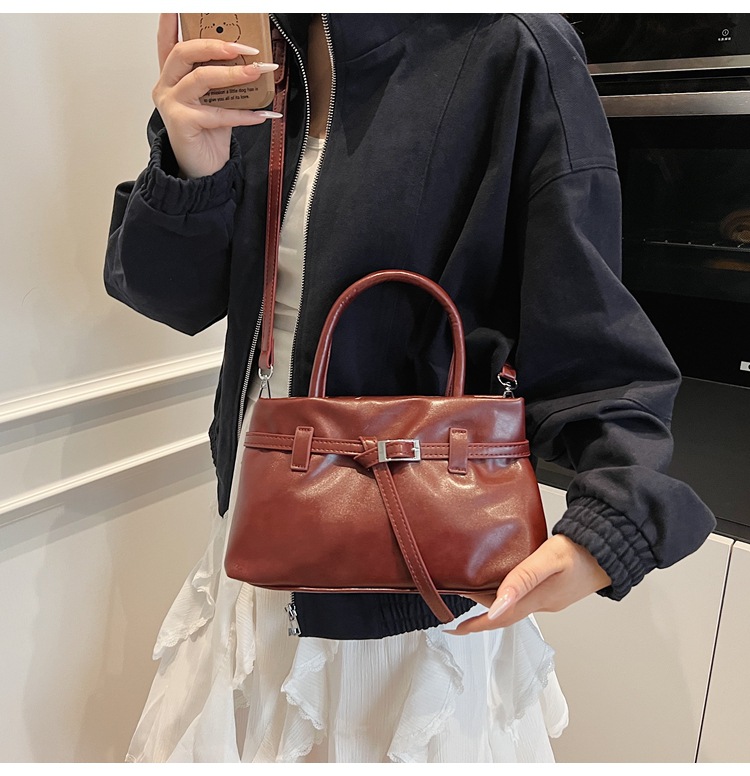 复古油蜡皮小方包时尚轻奢软皮单肩斜挎包高级洋气锁扣通勤锁扣包