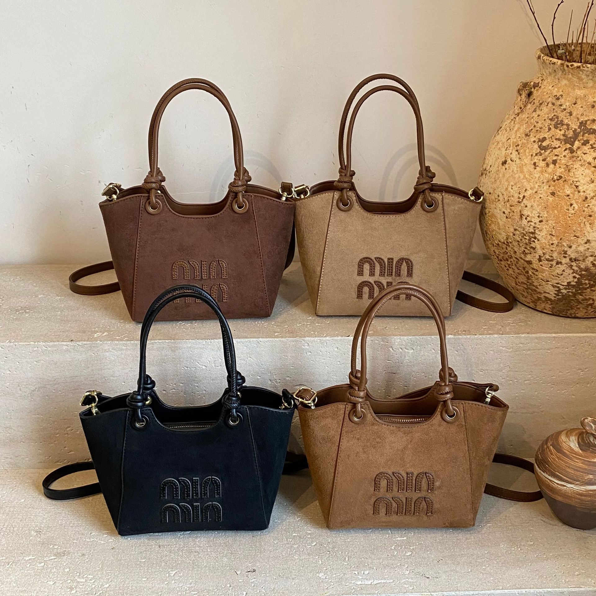 クロスボーダー大容量スエードつや消しハンドバッグ r.ow レトロトートデザイン気質ハイエンドショルダーバッグ