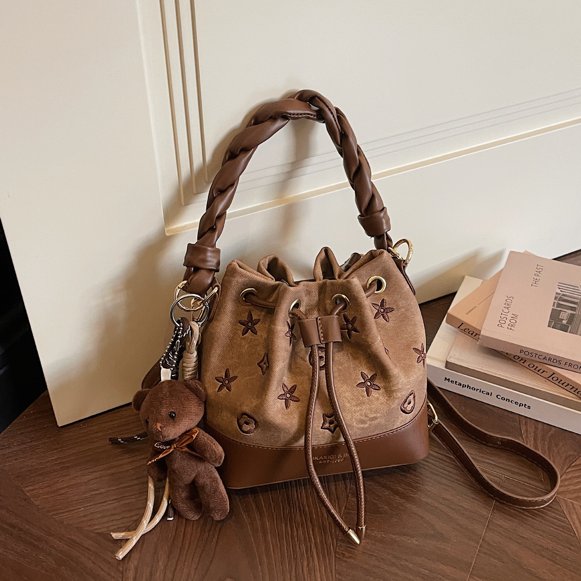 高级感大容量印花水桶特色麻花肩带通勤单肩包洋气精致个性手提包