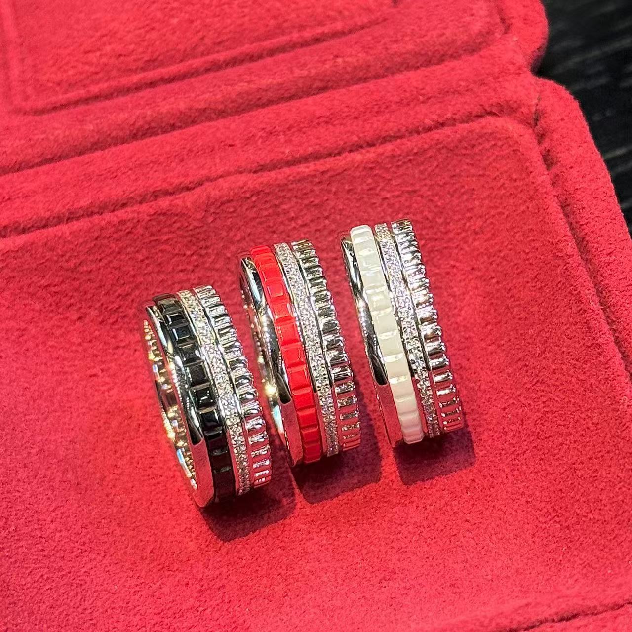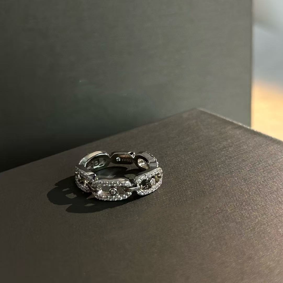 S925純銀セイコー高級感四列ドリル白黒赤陶磁器肖戦同金羅サテン指輪女性ドリルリング