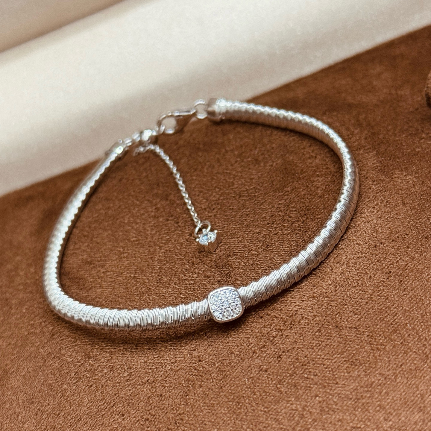 S925纯银金铉线方形围镶手链软手镯高级感百搭手饰可调节一件代发