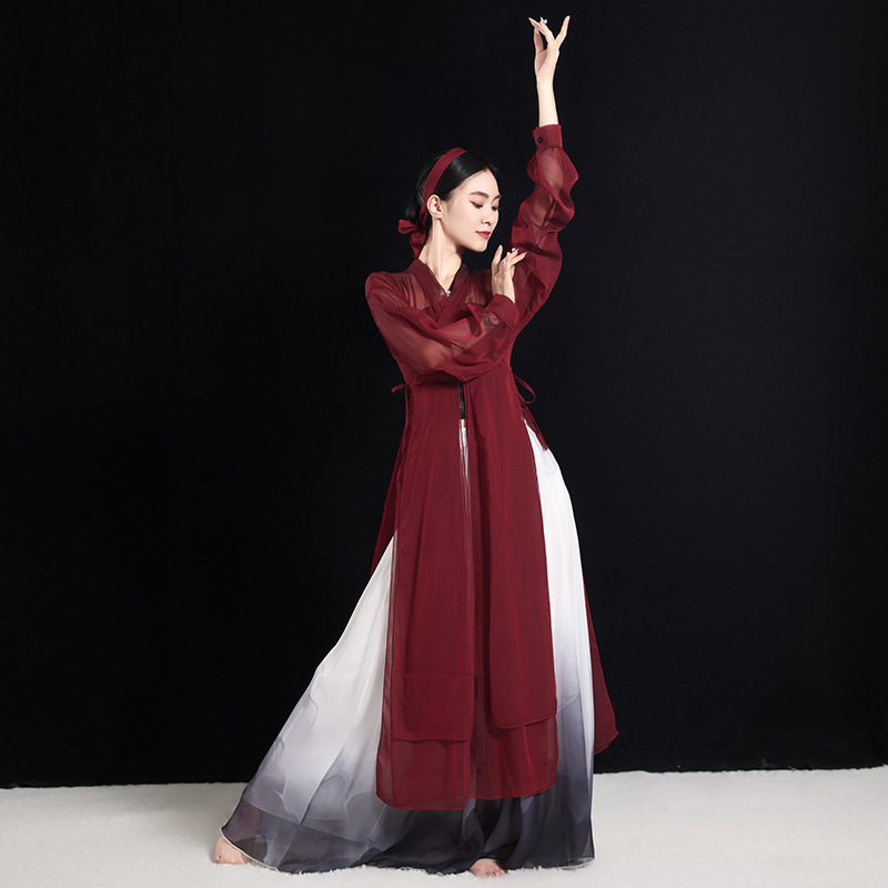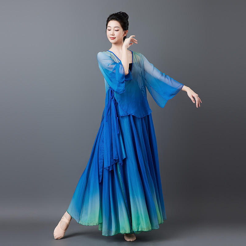 古風古典舞グラデーションジャズダンス服身韻紗衣民族女性仙気逸訓練服演出服装