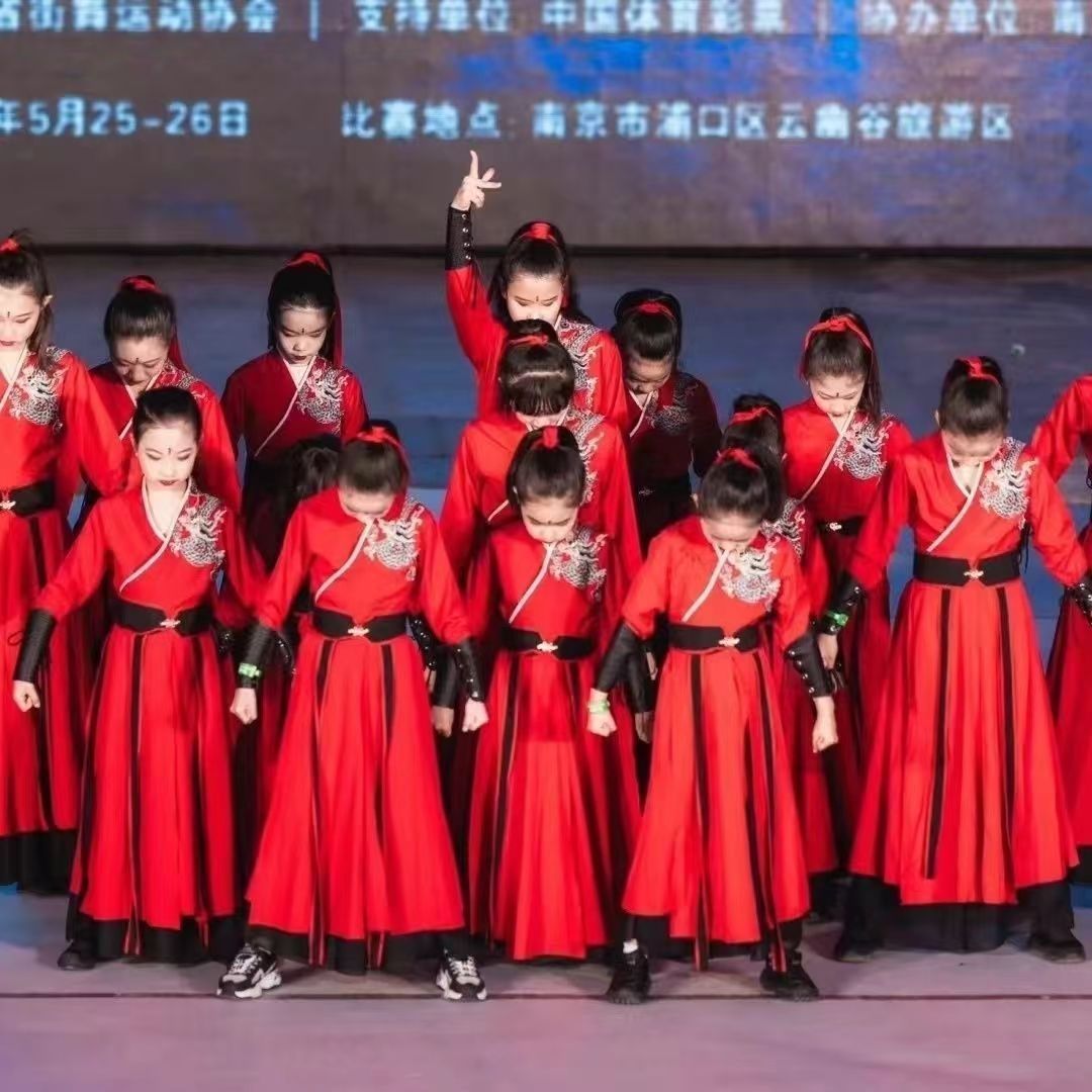 男の子と女の子向けの子供用パフォーマンス衣装、お祝いの楊子衣装、中国の赤いドラム衣装、幼児用チュチュスカート、ガーゼスカート
