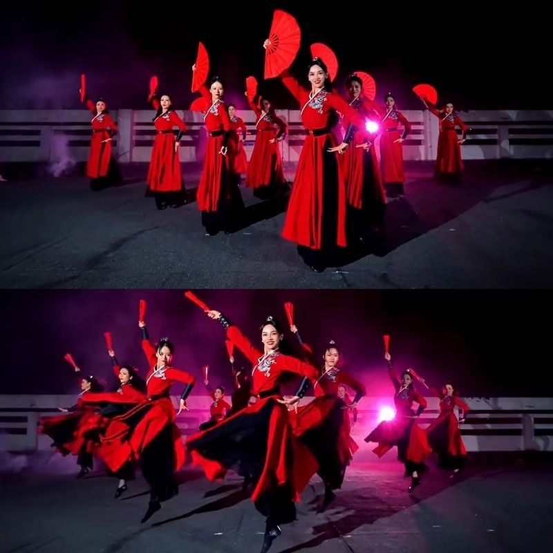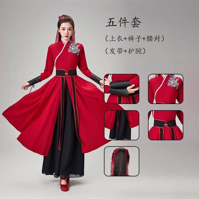 雪竜吟ダンス演出服万疆太極練功服芸考太鼓扇子舞元旦クラシックダンス演出服