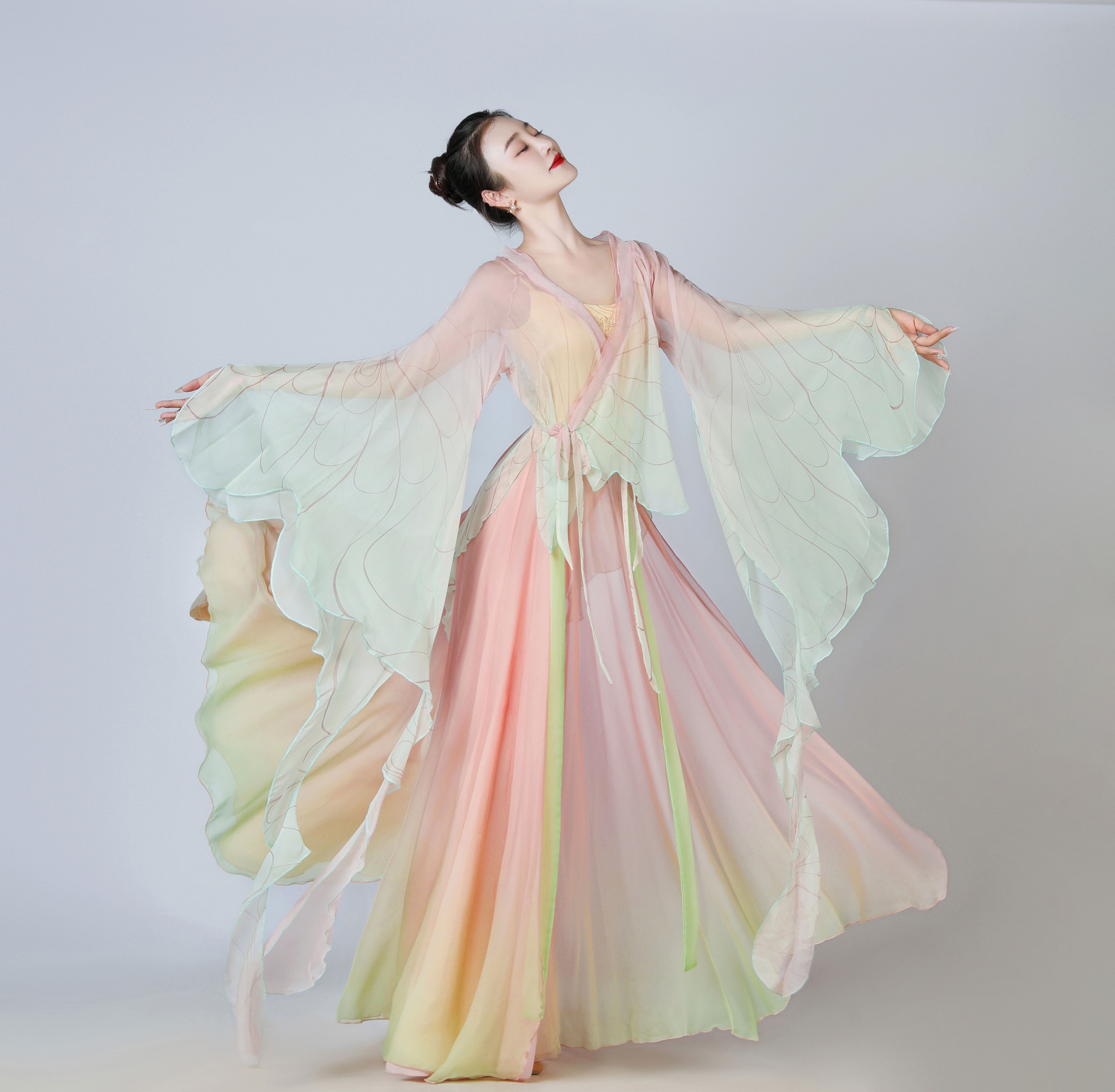 古典的なダンスの演出服の蝶のグラデーションが漂っています。