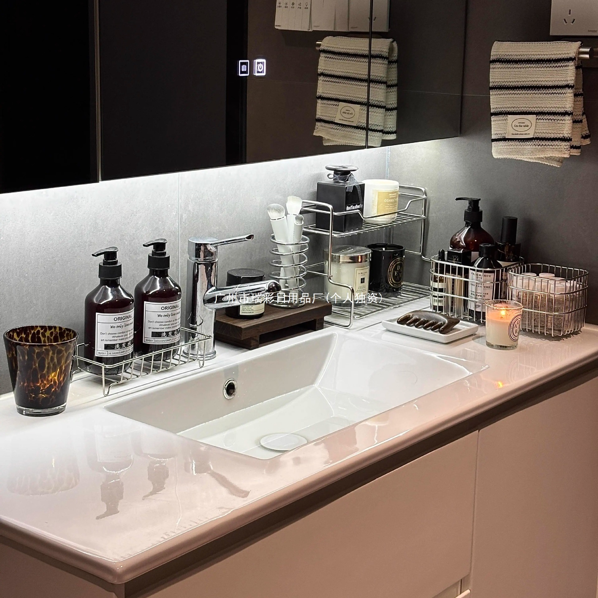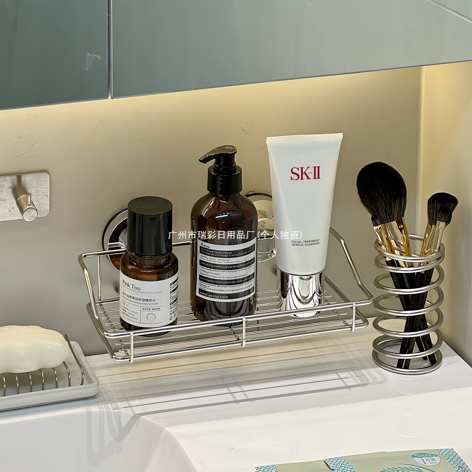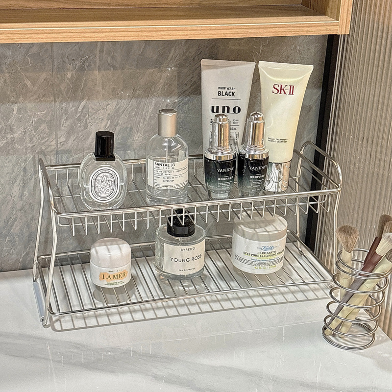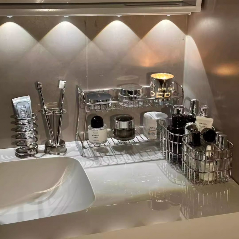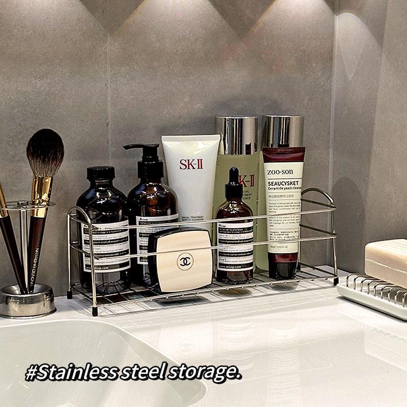 洗漱台收纳架桌面收纳盒置物不锈钢化妆品筐篮铁艺卫生间浴室厕所