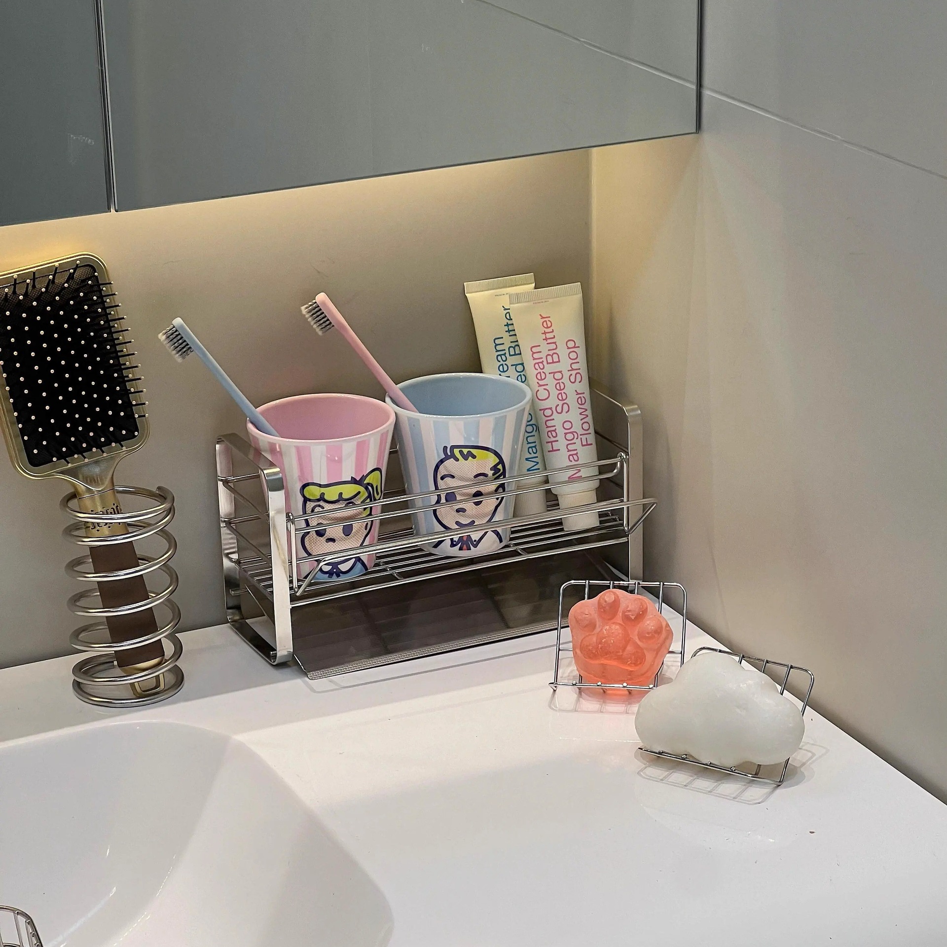 洗漱台不锈钢置物架浴室护肤品杂物收纳架洗手台面牙刷牙杯整理架