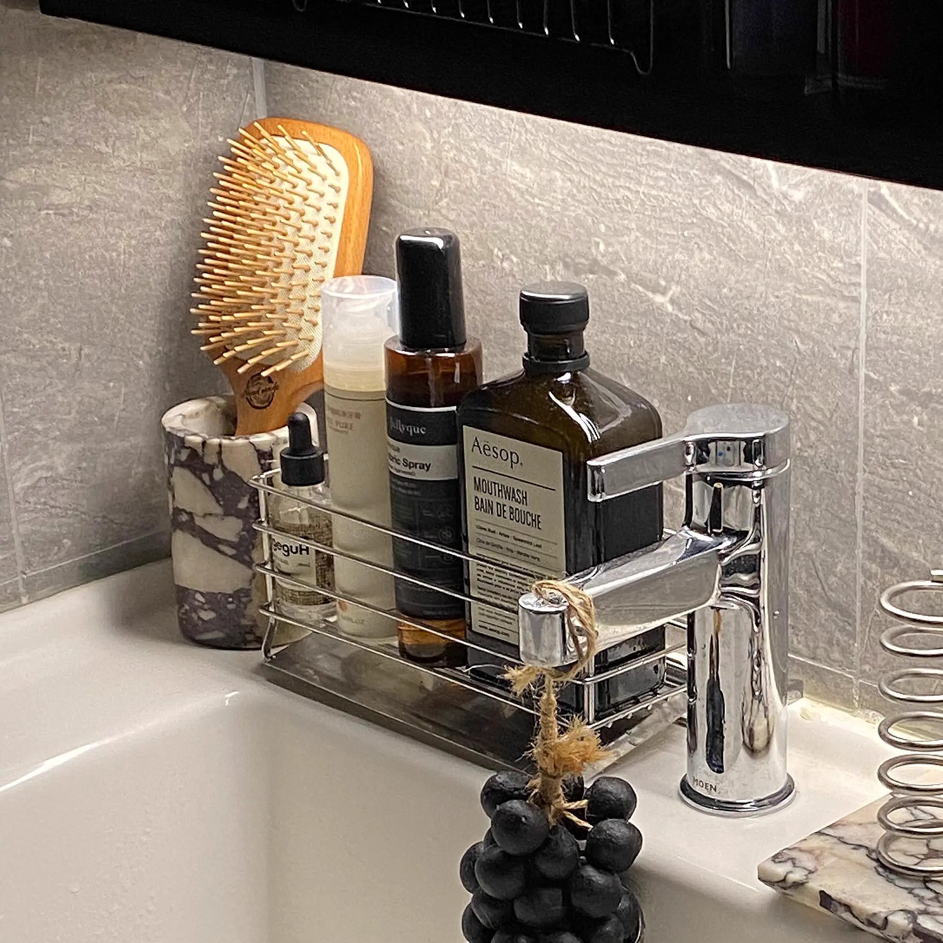 304 ステンレス鋼のバスルームシンク収納ラックスキンケア製品歯ブラシバスアメニティ収納バスケットオーガナイザーラックバスケット