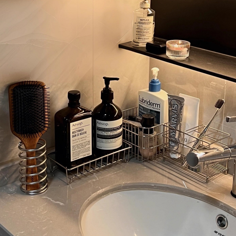 洗漱台收纳架桌面收纳盒沥水篮置物不锈钢牙刷架化妆品卫生间浴室