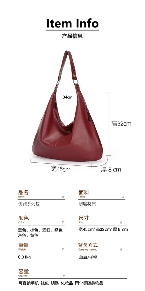 クロスボーダーレディースバッグ ソフトレザーバッグ インス風ブロガー 大容量餃子バッグ 旅行用斜め掛けバッグ トートバッグ インス風人気商品