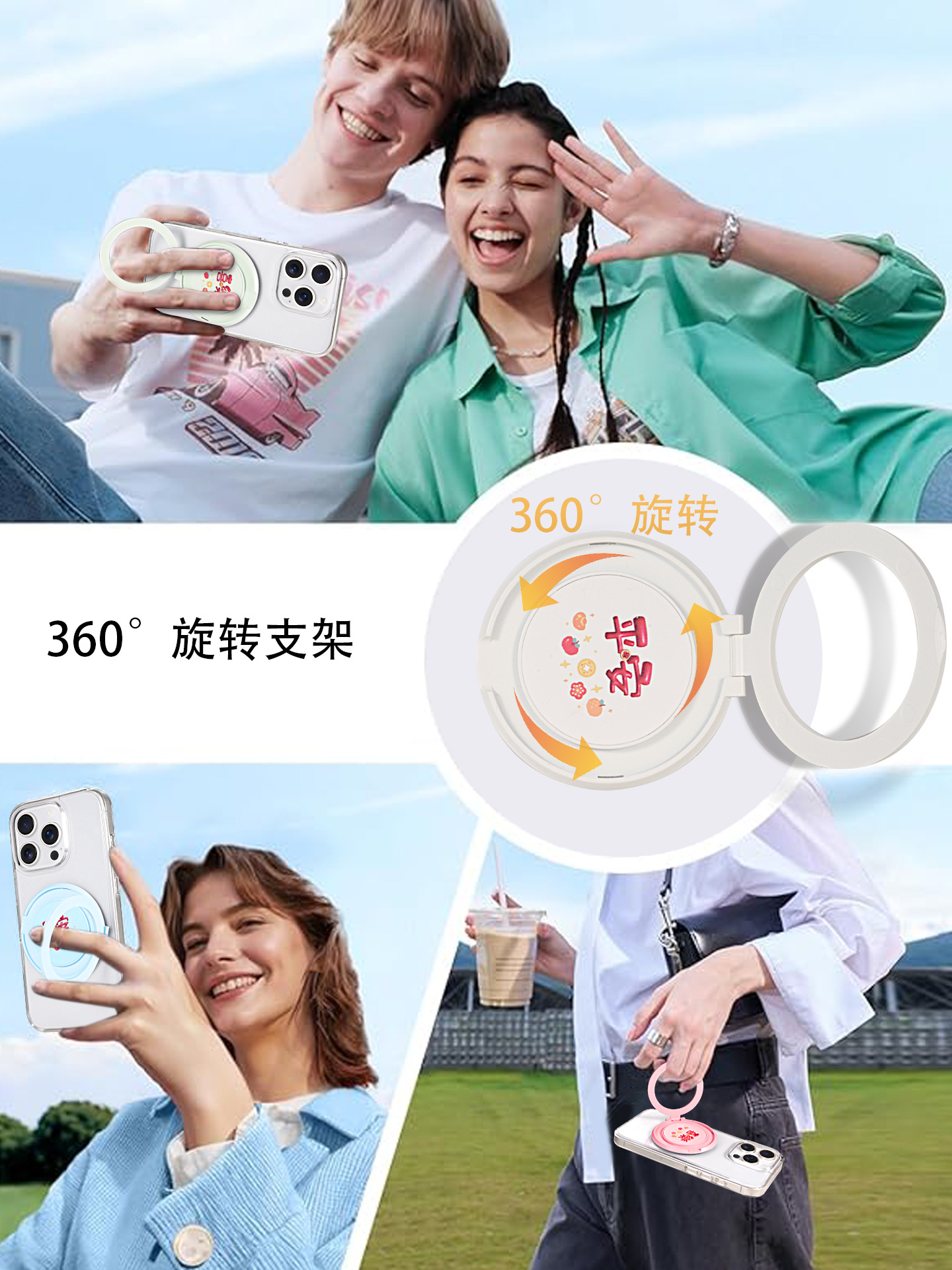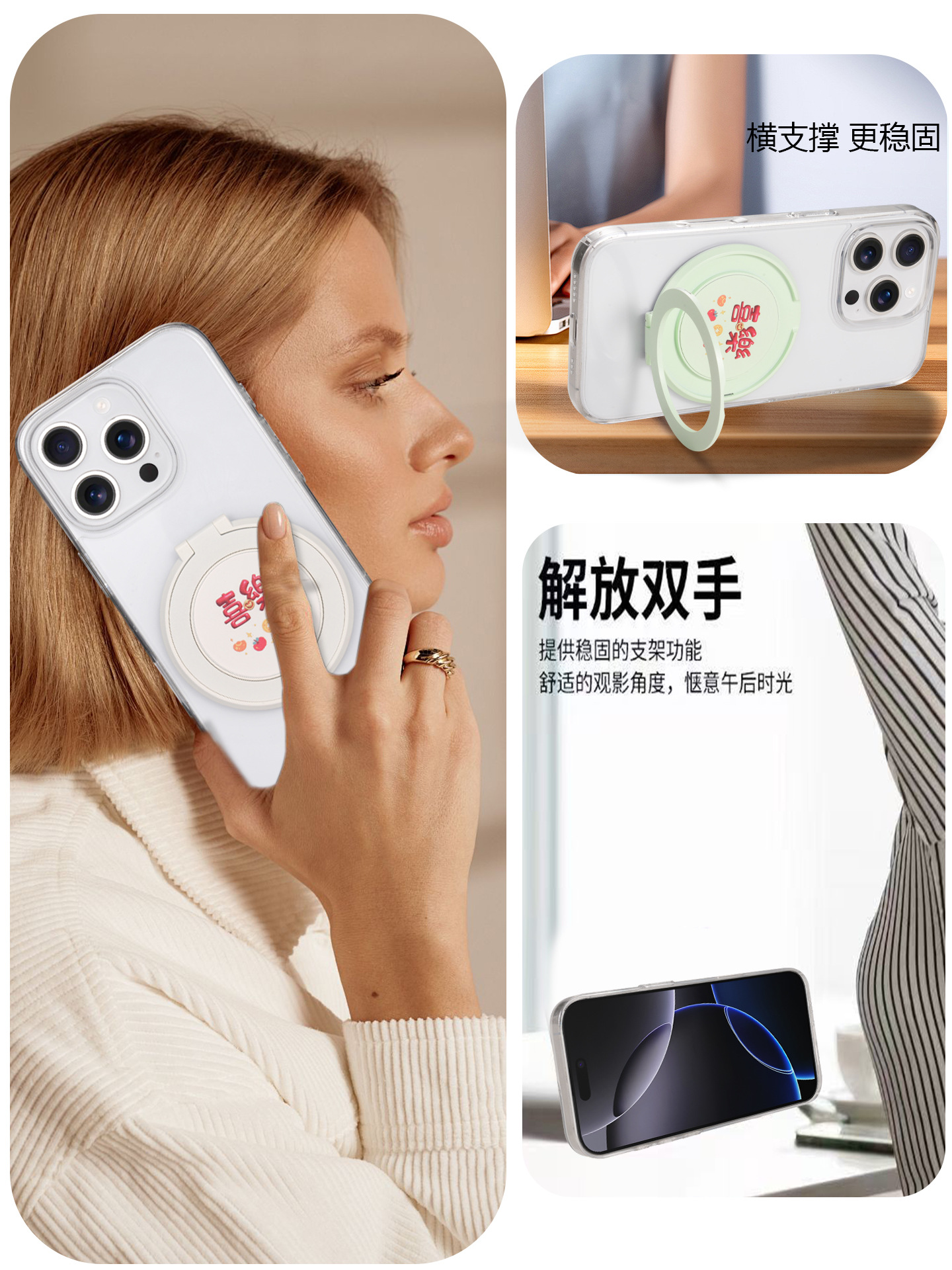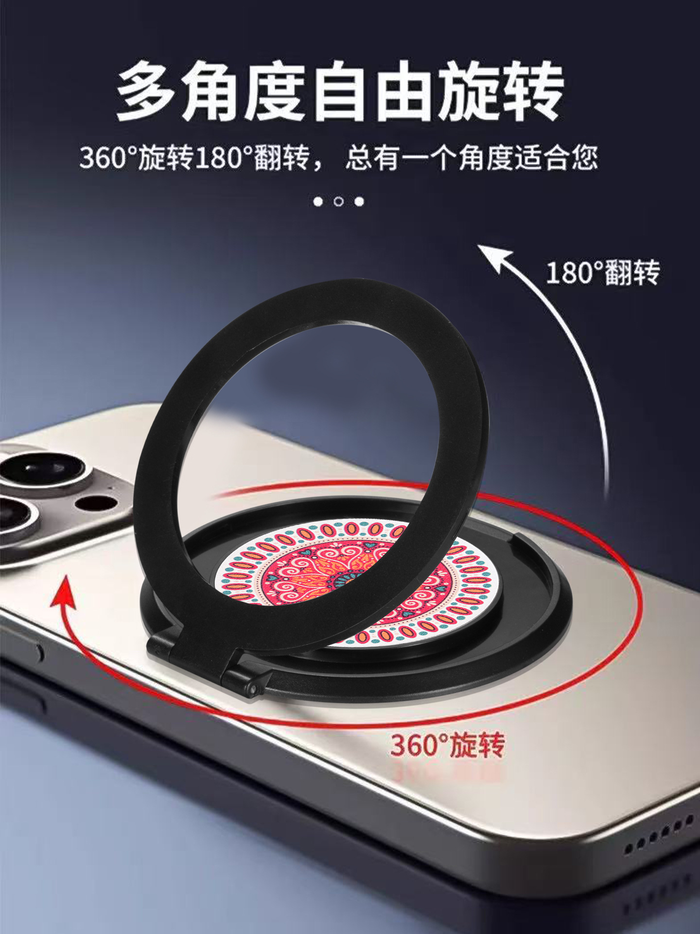 铝合金360度旋转指环扣支架粘贴式magsafe磁吸懒人背贴扣手机支撑