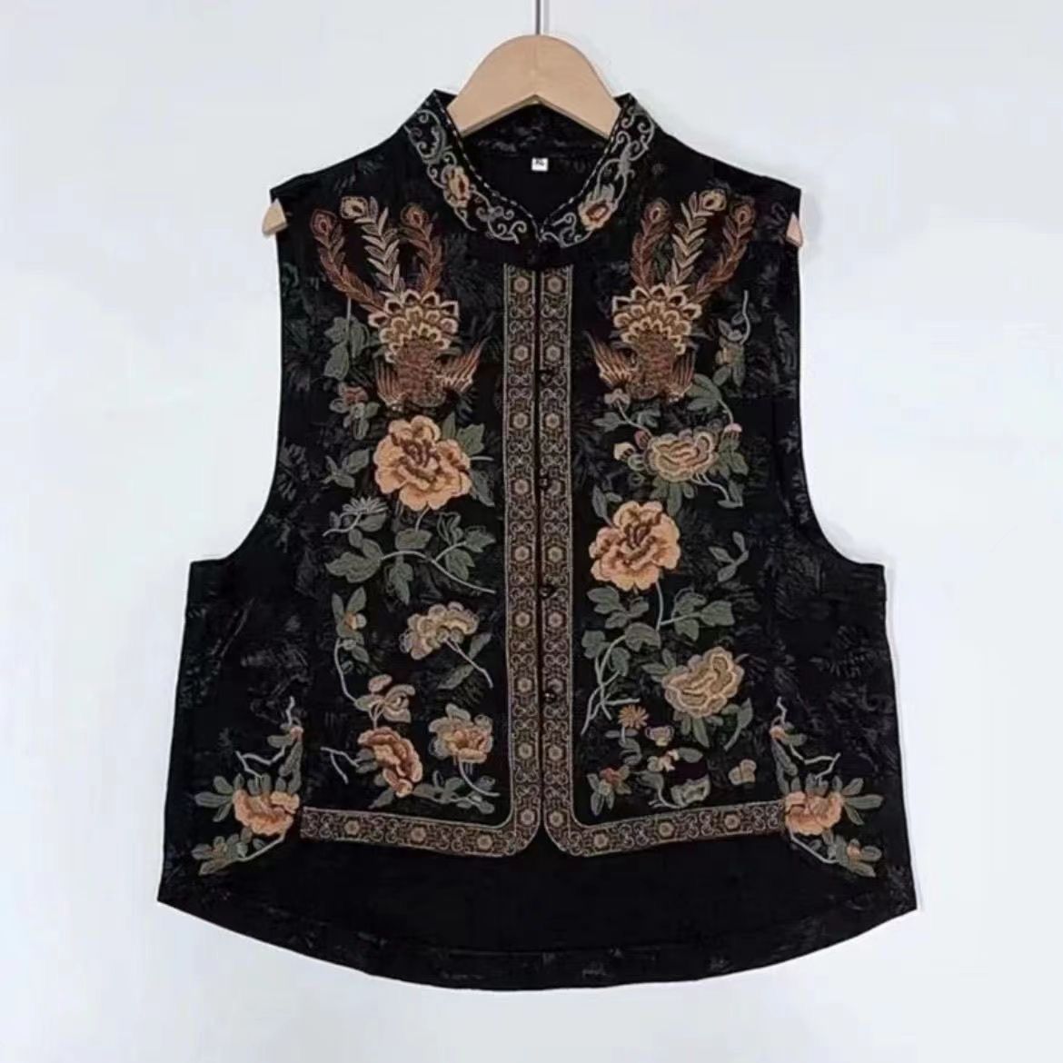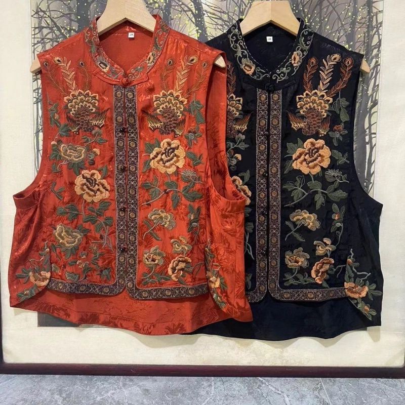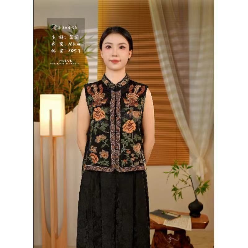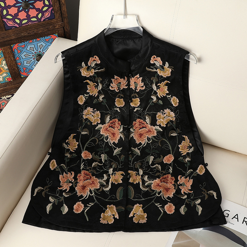 新型2025新中国風民族刺繍立襟重工レトロ国風ショートファッション丸首馬甲