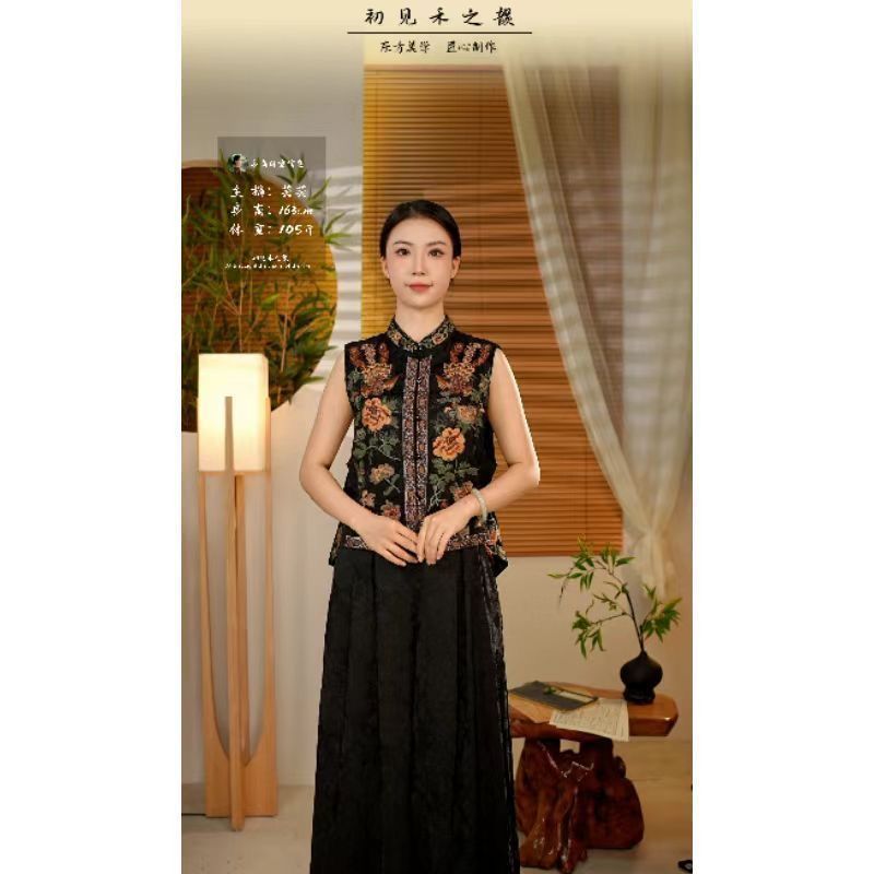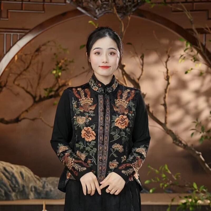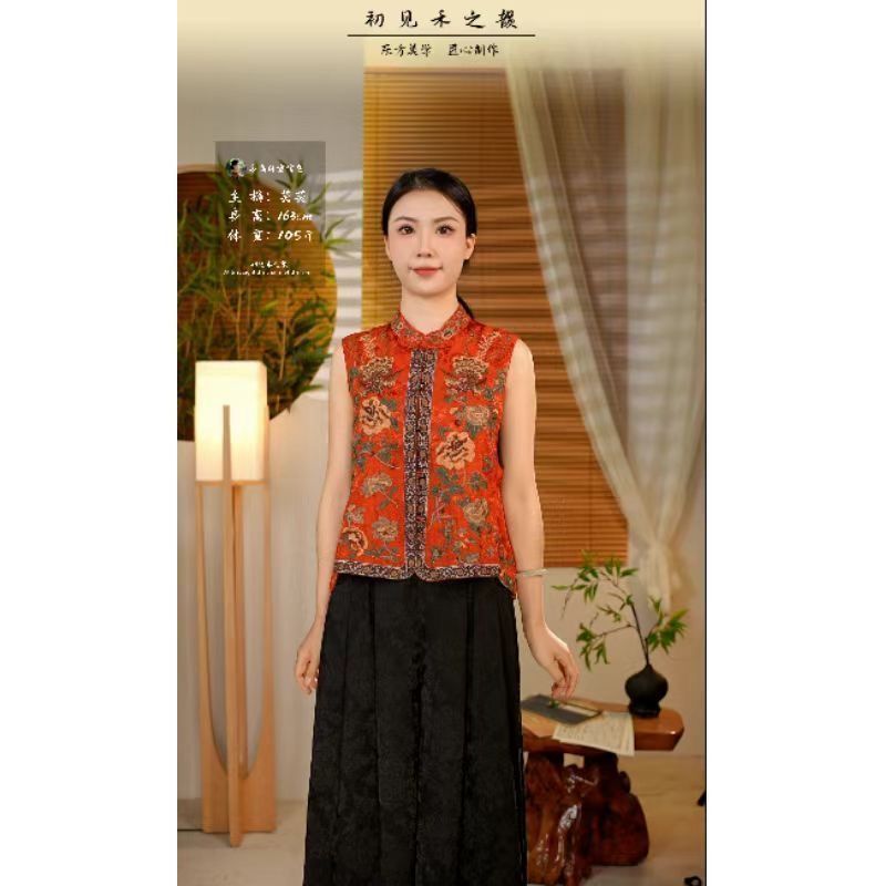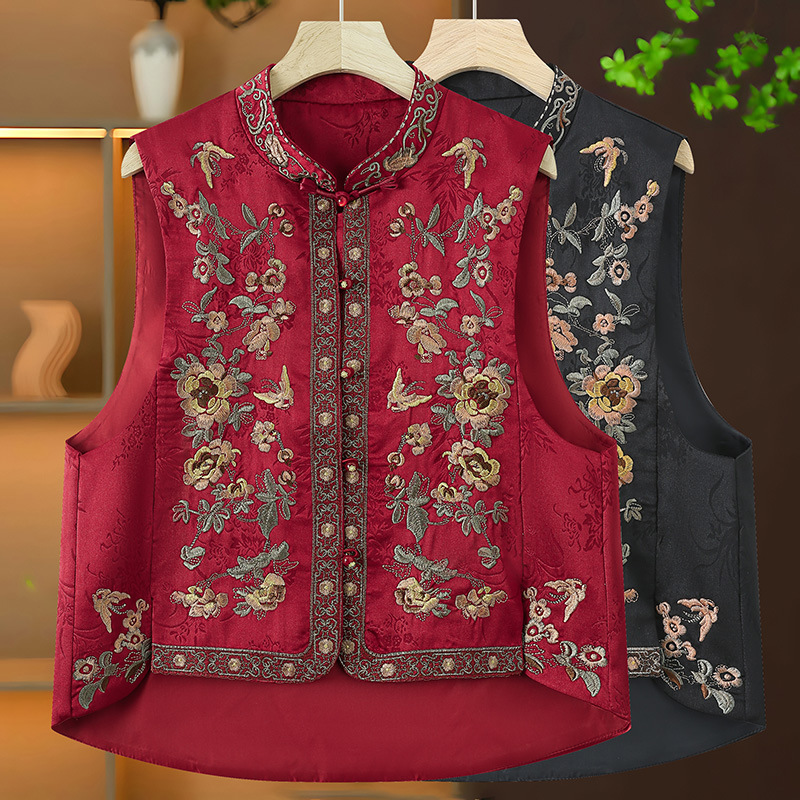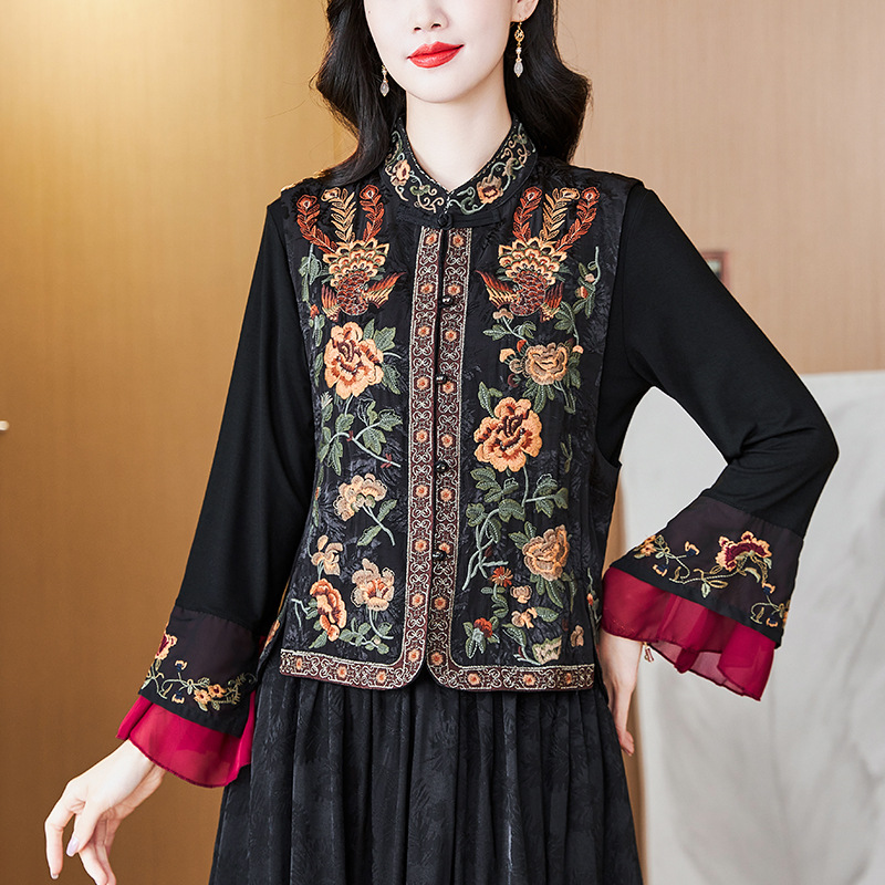 新型2025新中国風民族刺繍立襟重工レトロ国風ショートファッション丸首馬甲