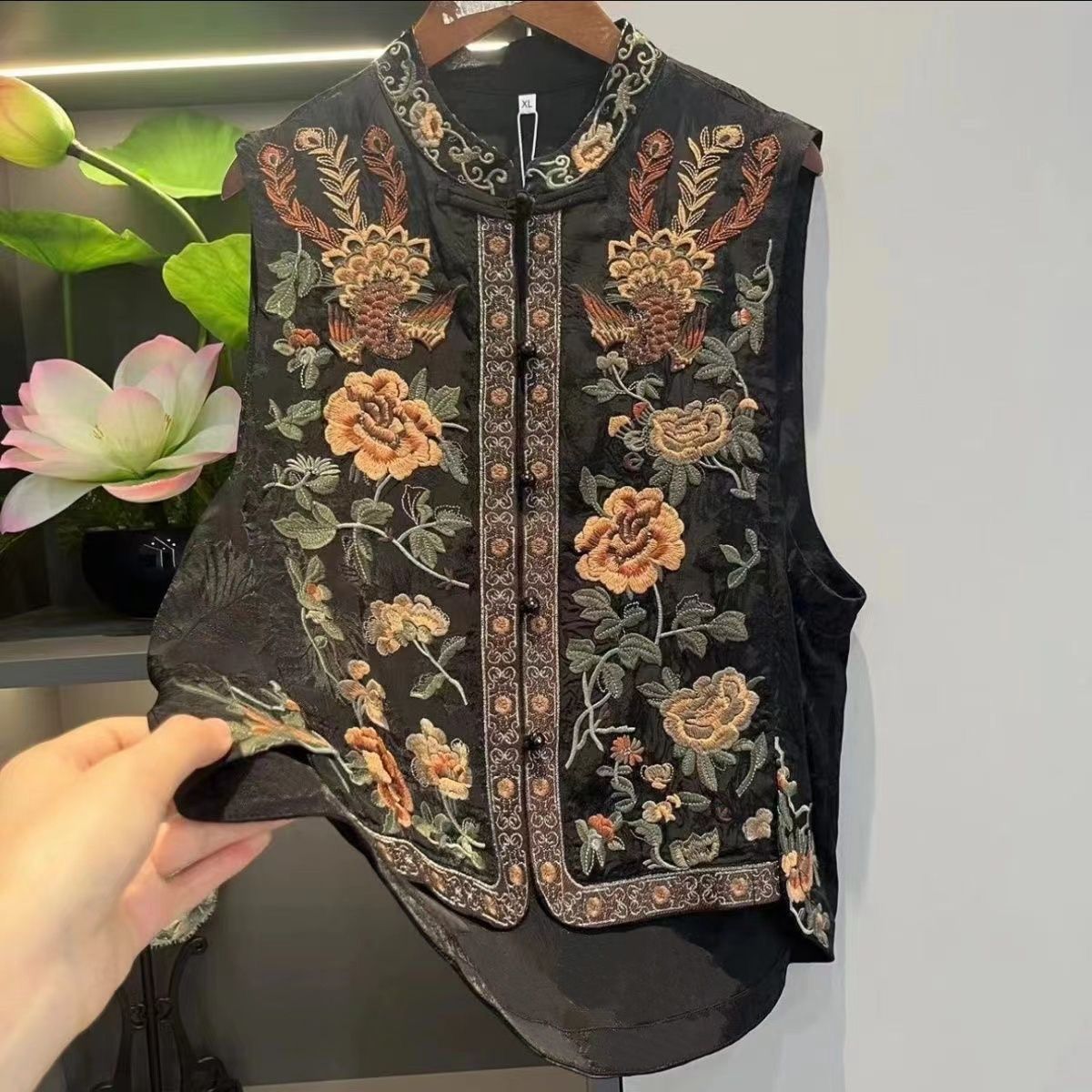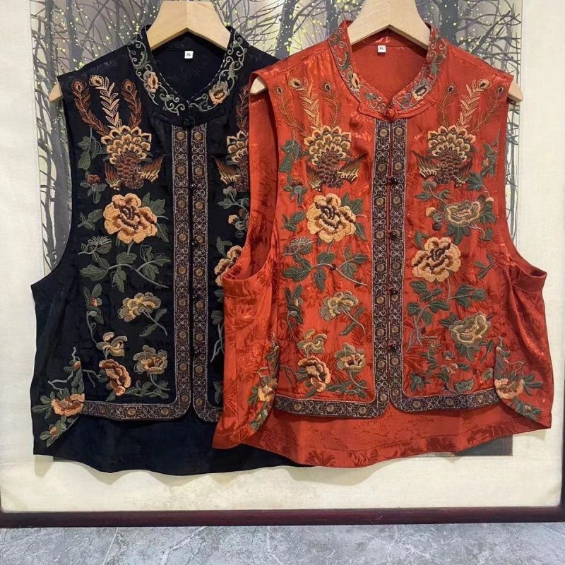 2025新中国式民族立襟新型重工刺繍綿麻馬甲国風カンカン肩復古ベストカーディガン