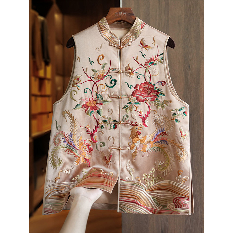 番頭力推重工国潮風鳳凰刺繍酢酸ベスト