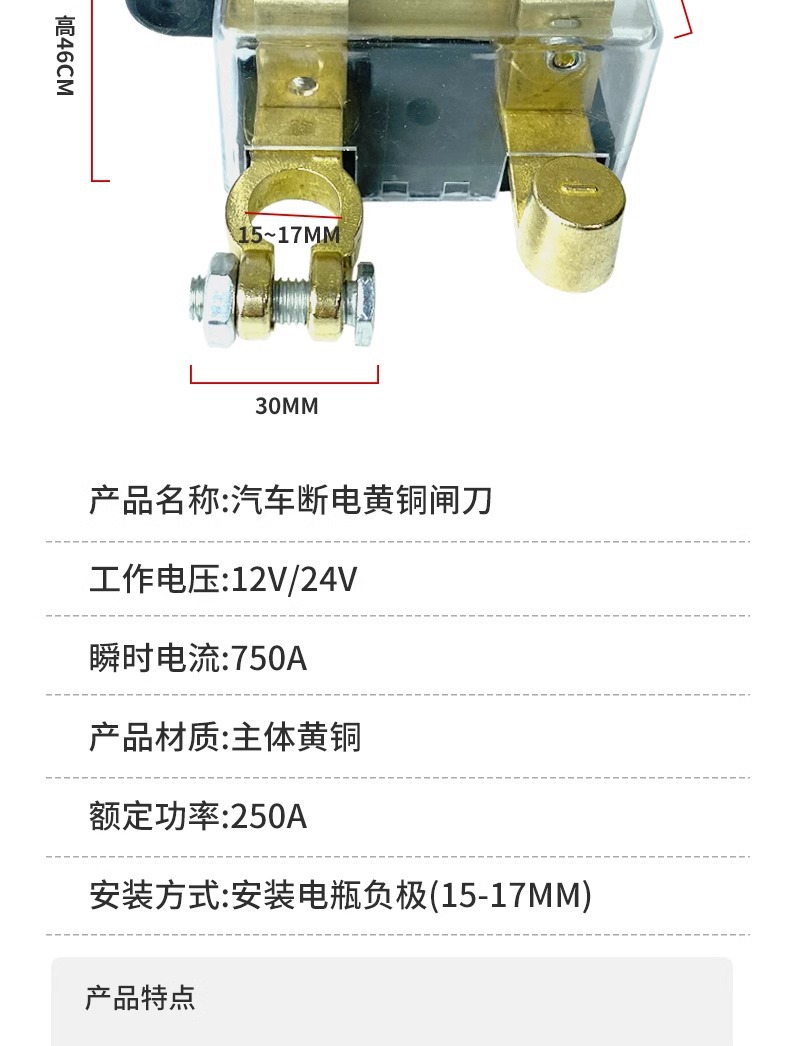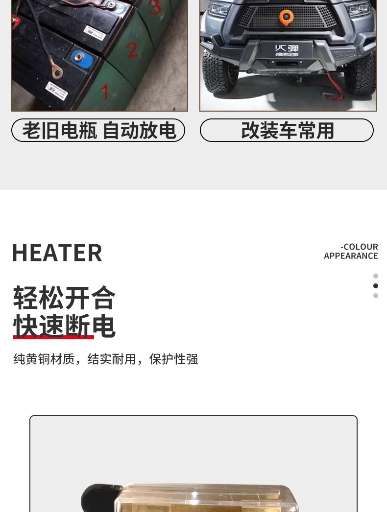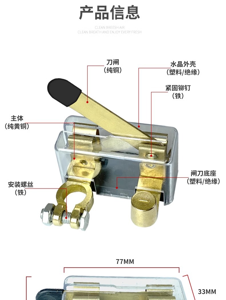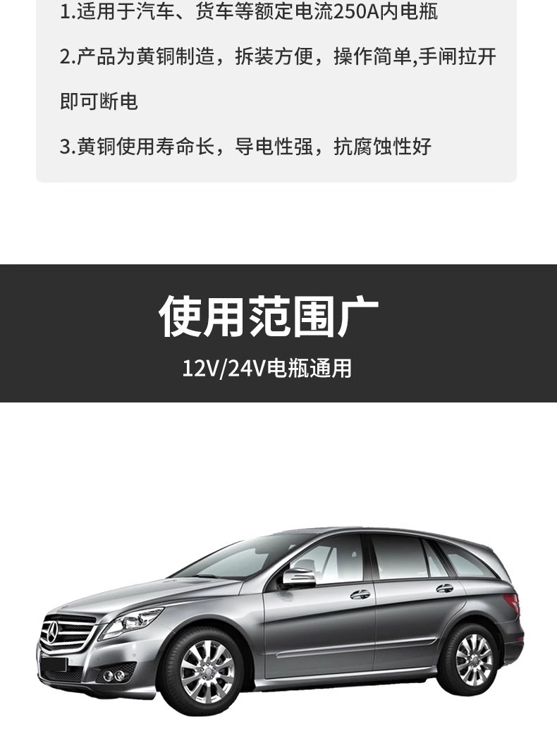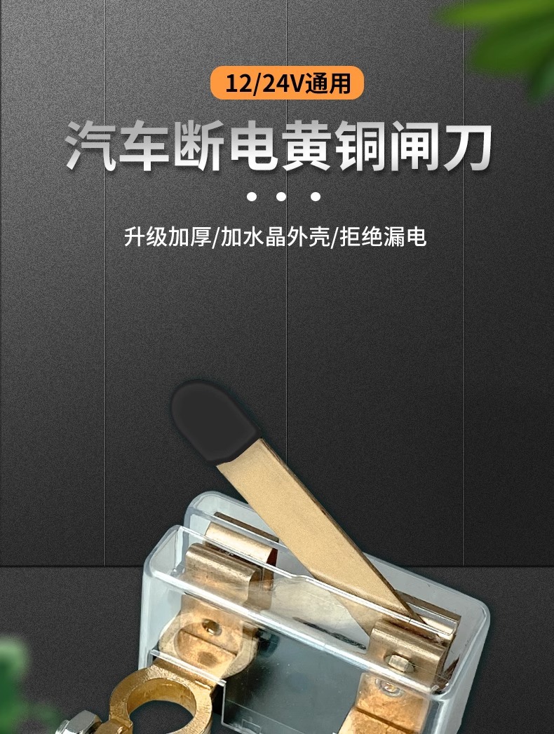 汽车电瓶断电开关纯铜正负极通用防漏闸刀防漏电改装黄铜总闸车子