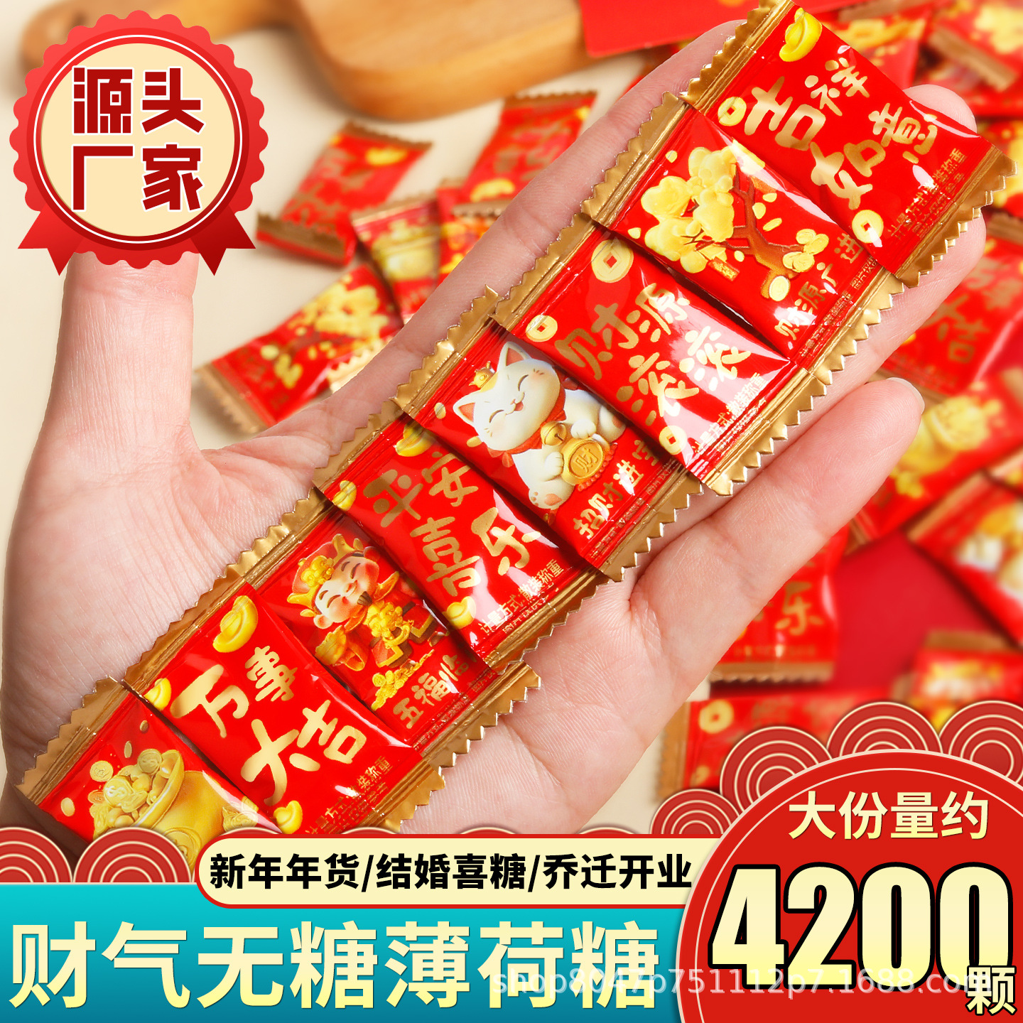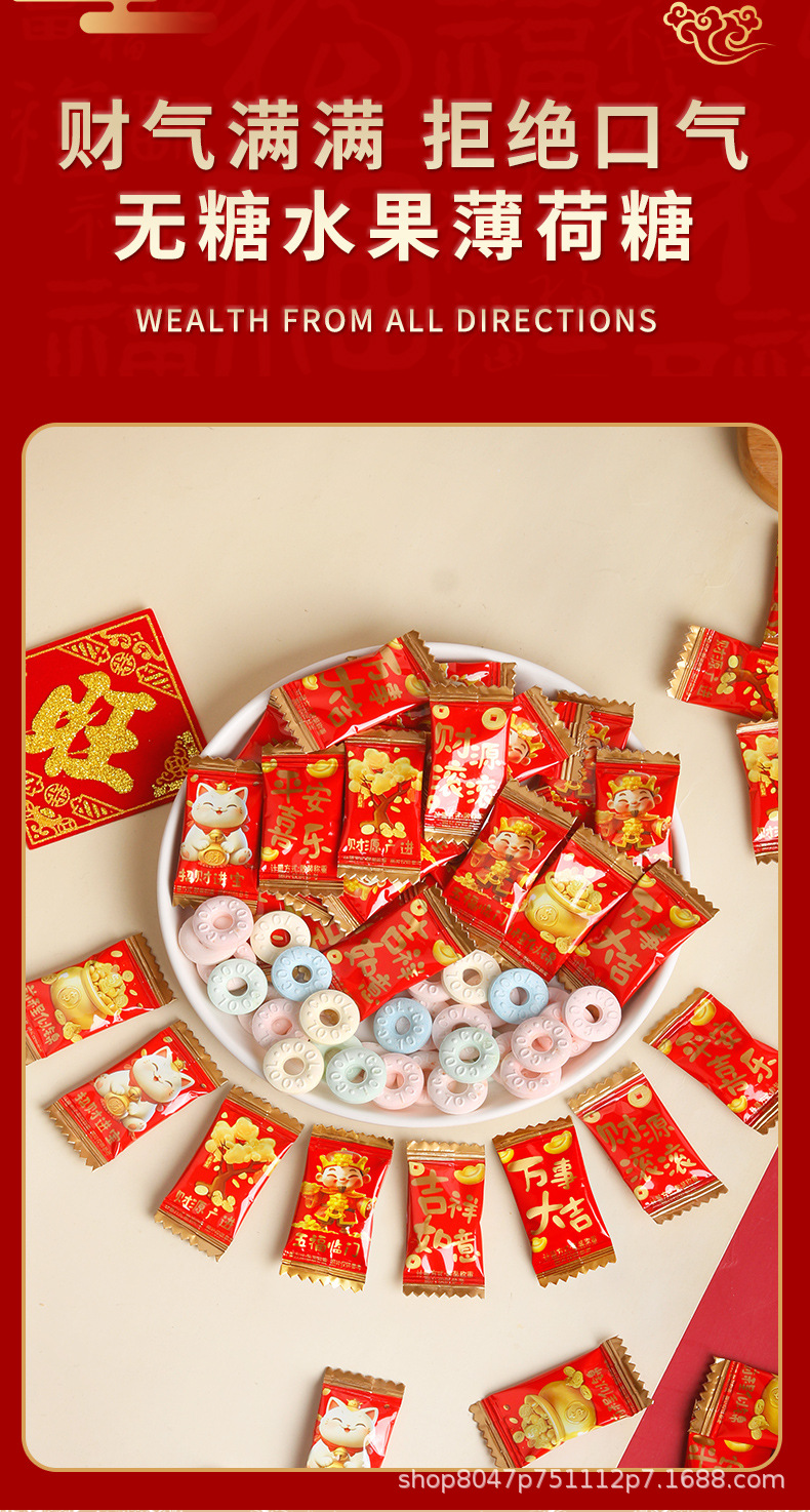 财气语录无糖薄荷糖果新年喜庆祝福清新口气开业乔迁好运招待批发