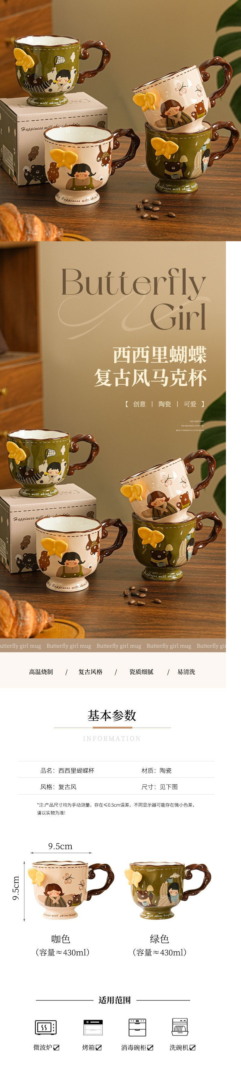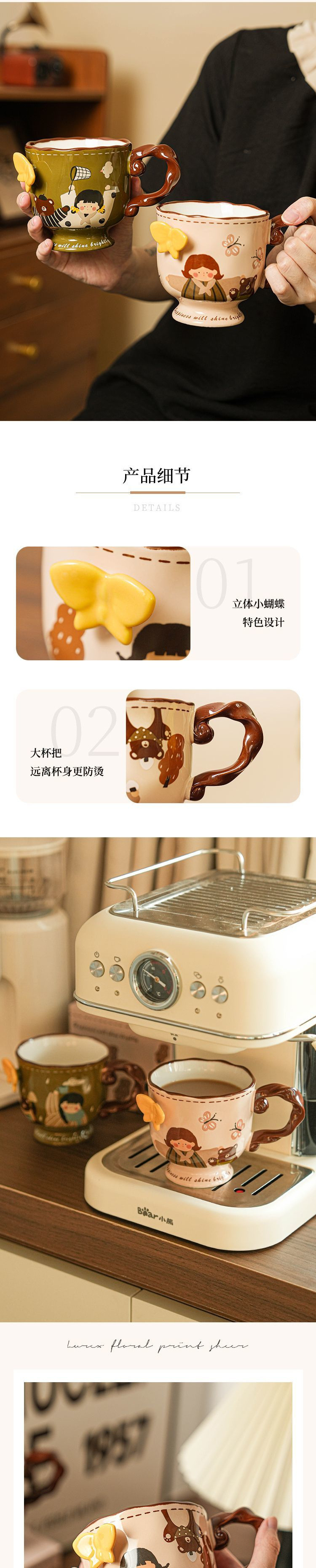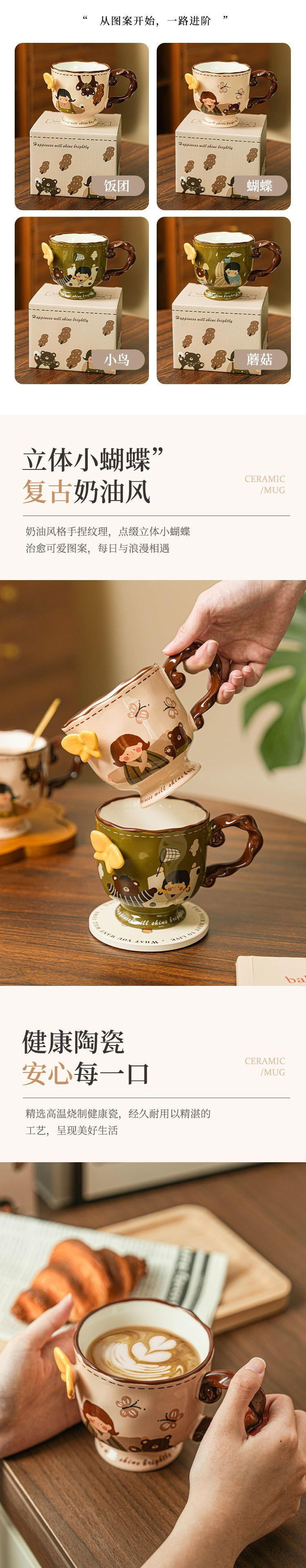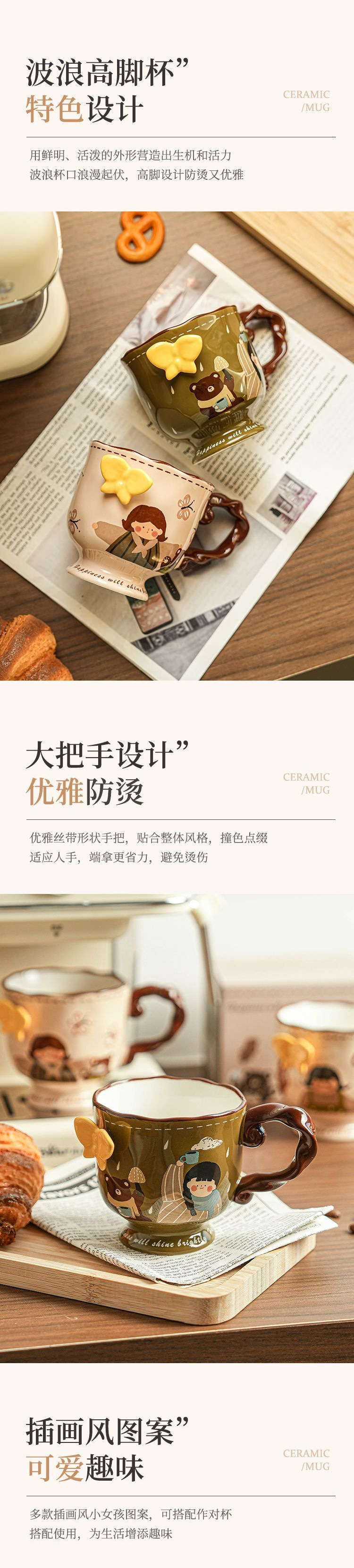 レトロかわいい女の子マグカップセラミック高颜値家庭用オフィスカップコーヒーカップお土産誕生日